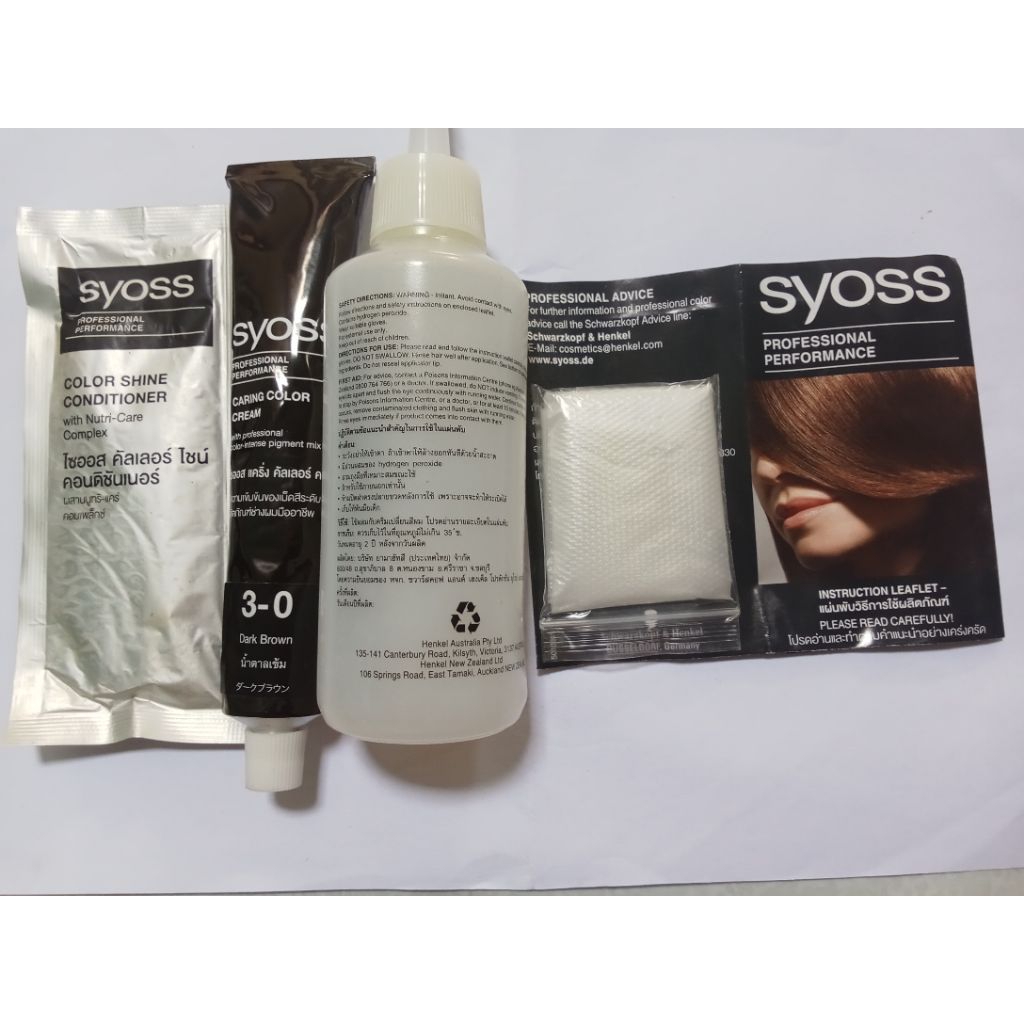 (Pamigay Sale) Syoss Hair Color (Dark Brown)3-0 (Dark Brown) Color Cream,Conditioner,Developer