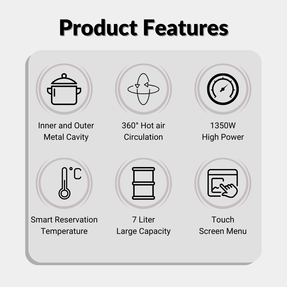 5 Years Warranty AF539D 8 Liter Air Fryer Large High-Capacity Air Fryer