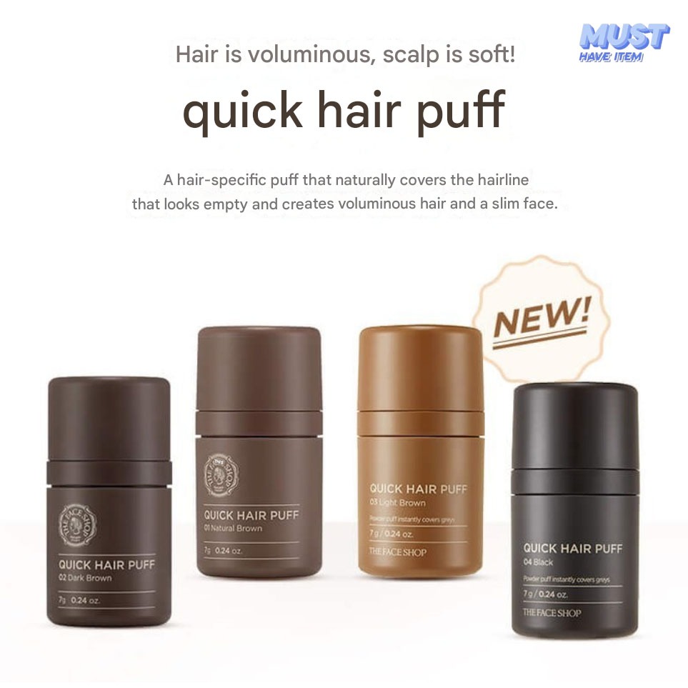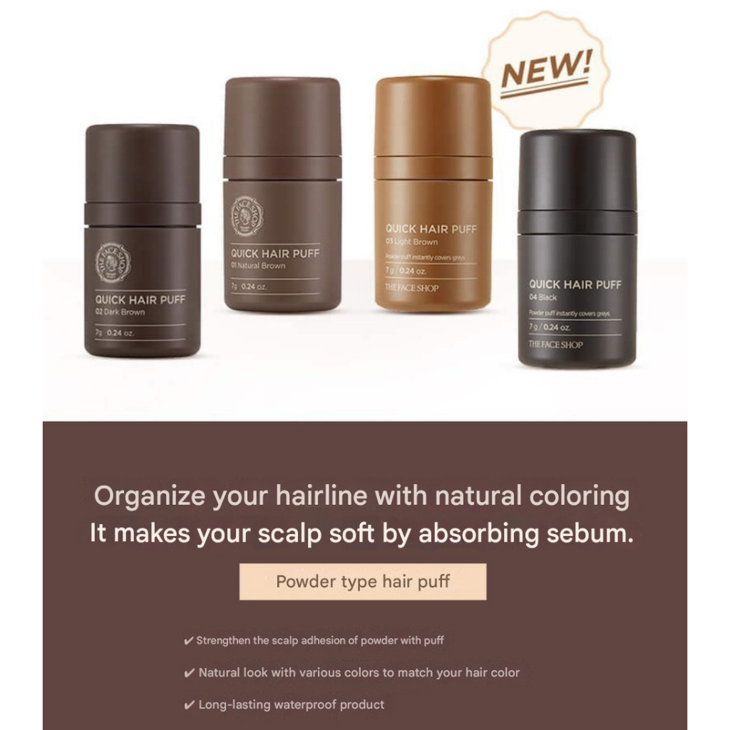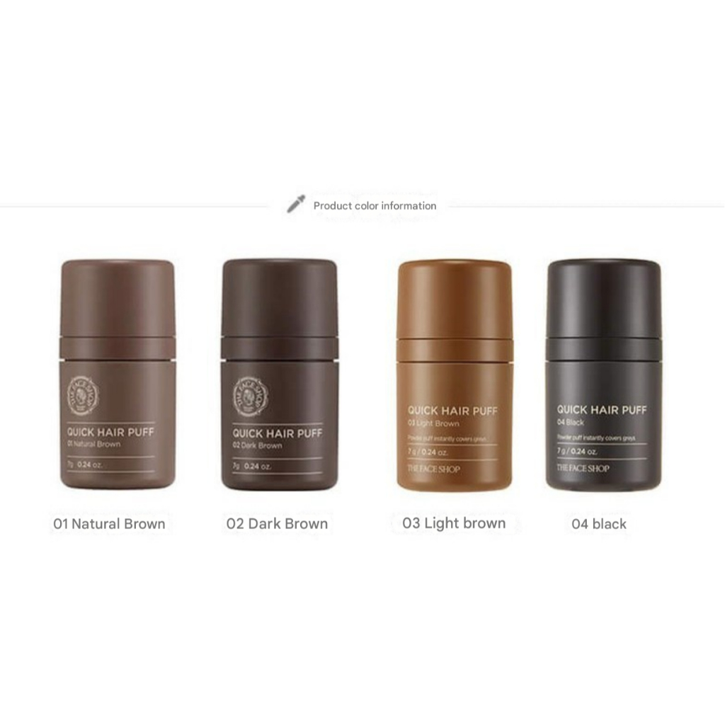 The Face Shop Quick Hair Puff 7g, 01 Natural Brown, 02 Dark Brown, 03 Light Brown, 04 Black