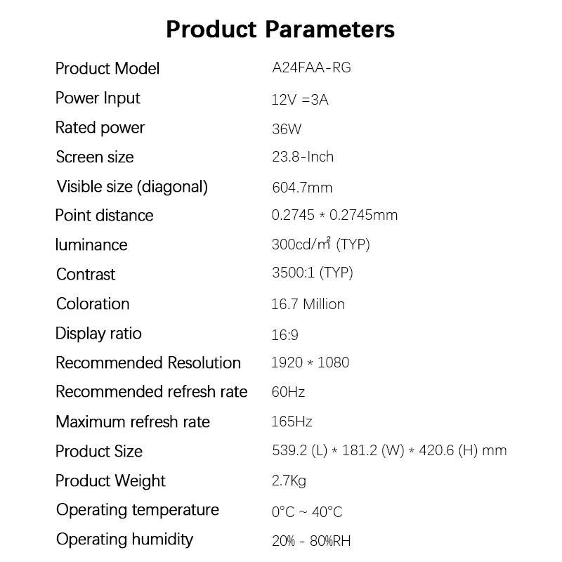 Xiaomi Gaming Monitor G24 23.8"180Hz Fast IPS Full HD HDR10 120%sRGB 8 bit Low Blue Light