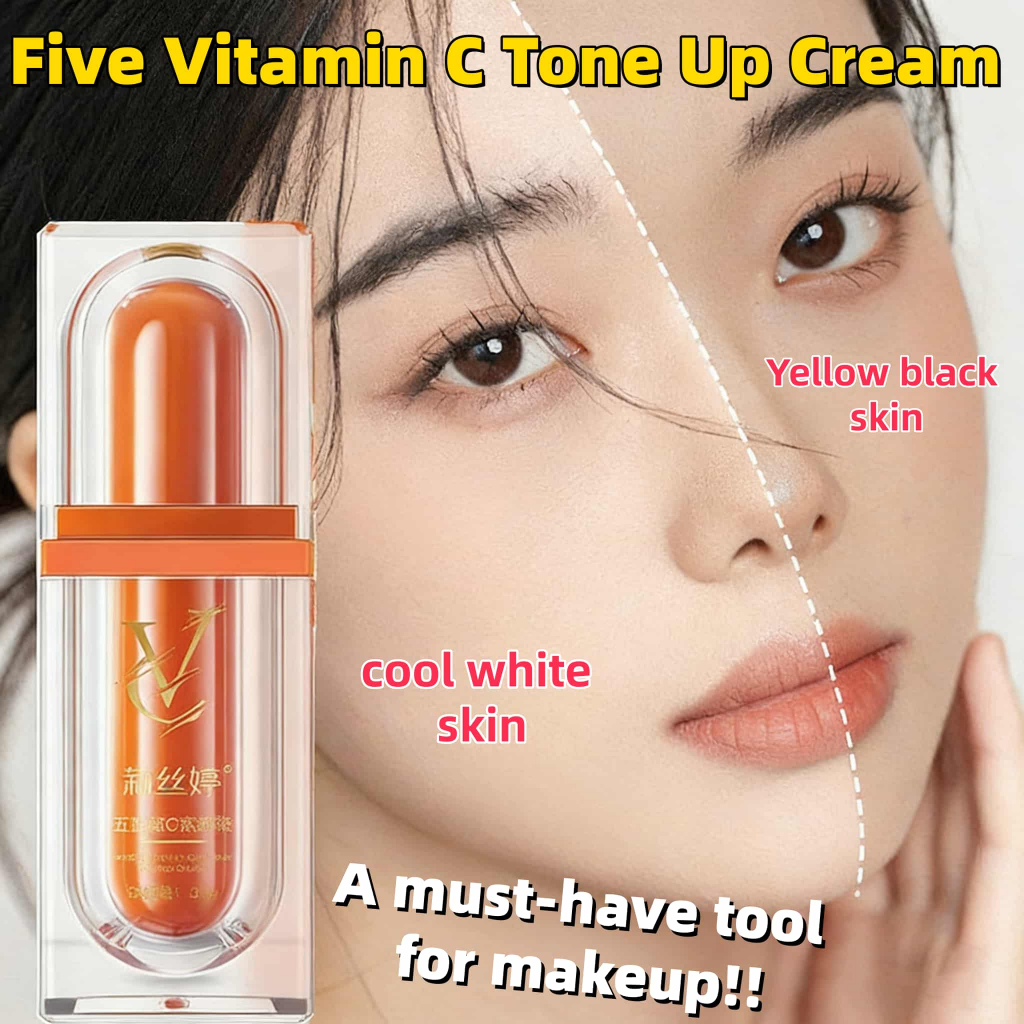 Five Vitamin C Tone Up Cream Whitening Lazy Cream Long-Lasting Natural Coverage Makeup Cream 30g