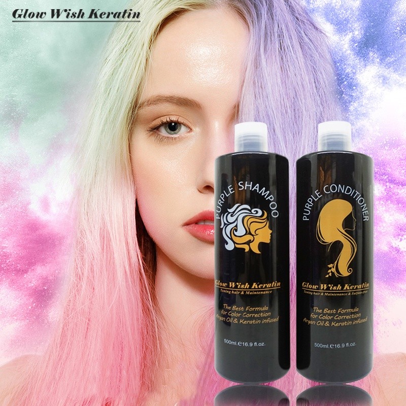 Glow Wish Keratin Hair Purple Shampoo & Purple Conditioner 500ml