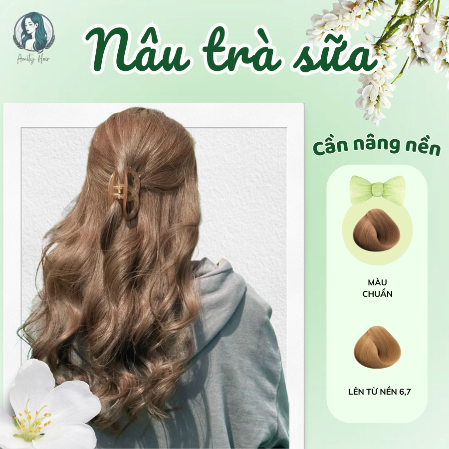Hair dye, at-home hair dye in MILK TEA BROWN, Amityhair, No bleach, comes with dyeing tools.