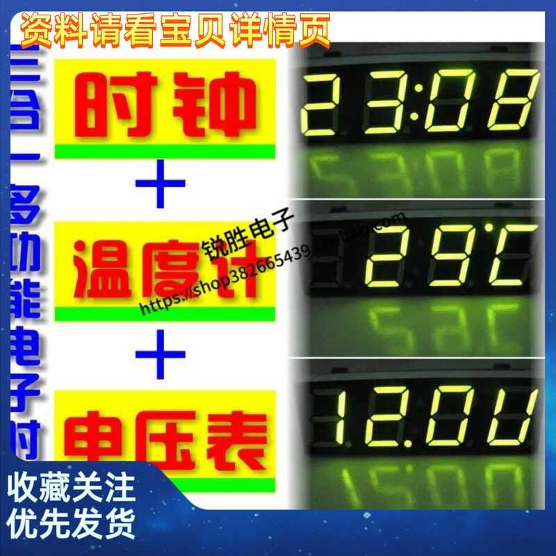 ☑♥ Digital Tube Electronic Clock LED Three-in-One Electronic Clock Time+Temperature+Voltage A-Type