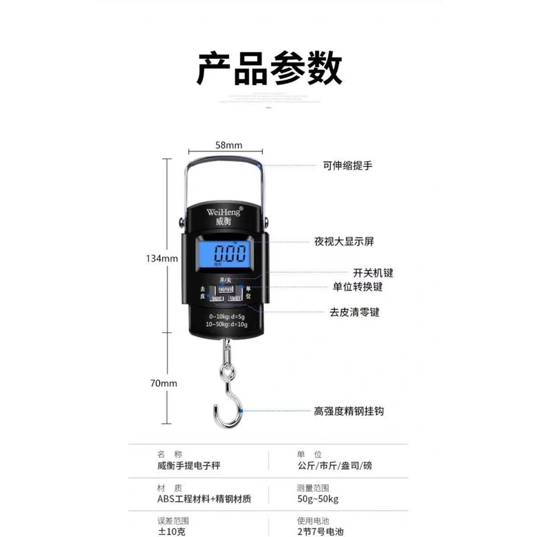 Household Portable Scale High-Precision Electronic Hook Retractable Handle Express Hanging Tension Meter Backlight 100kg 100kg Weighing