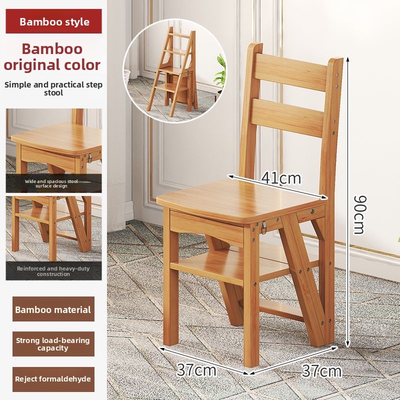 Household Step Stool Multi-Functional Folding Flip Dual-Use Step Stool Indoor Two-Step Three-Step Climbing Stair Chair Solid Wood Chair/Solid Wood Ladder