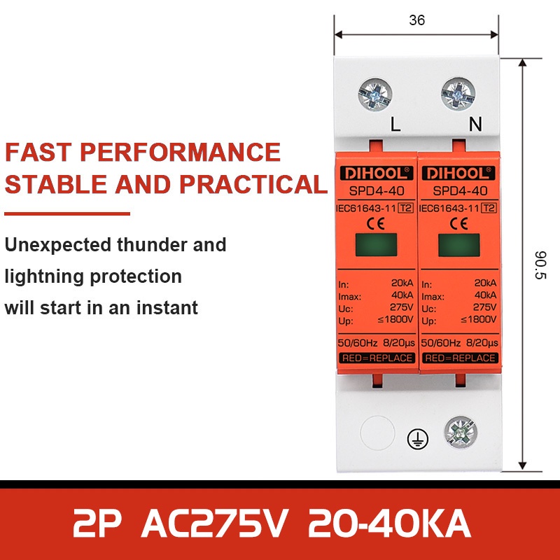 Household Surge Protective Device Surge Protector MCB AC 275V SPD 2P 20KA~40KA Lightning Protection Ground Protection