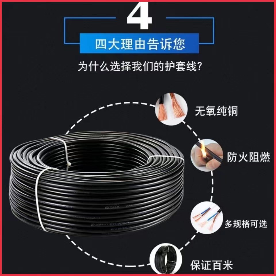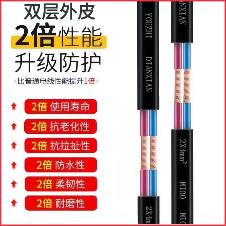 Household Two-core Sheathed Wire 2 Core 2.5 Square Waterproof Antifreeze Power Cord Cable