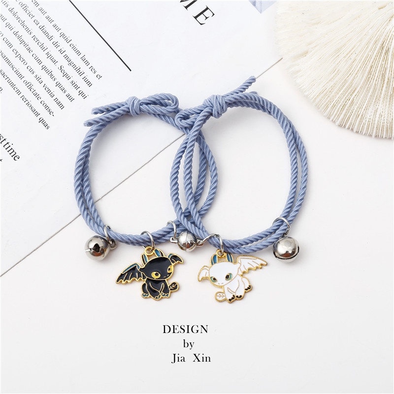 How to Train Your Dragon Toothless Couple Bracelet Black and White Shuangsha Cartoon Girlfriend Personality Hip Hop Wild Jewelry Magnet attracts men and women trendy gift box