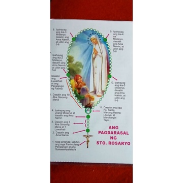 How to pray the rosary guide with plastic cover -English/Tagalog (Rosary included)