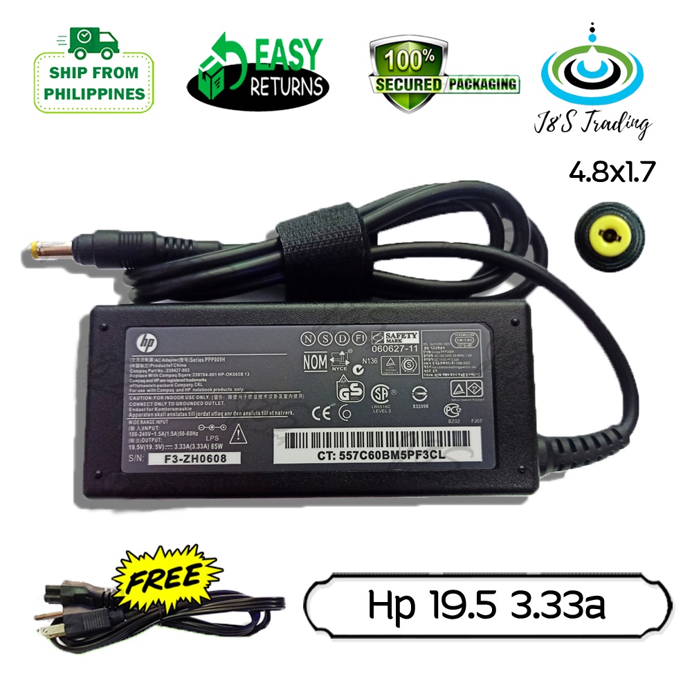 Hp Laptop Charger 19.5V 3.33A 4.8Mm X 1.7Mm Ac Adapter For Envy 4 Env7 6 Etc.