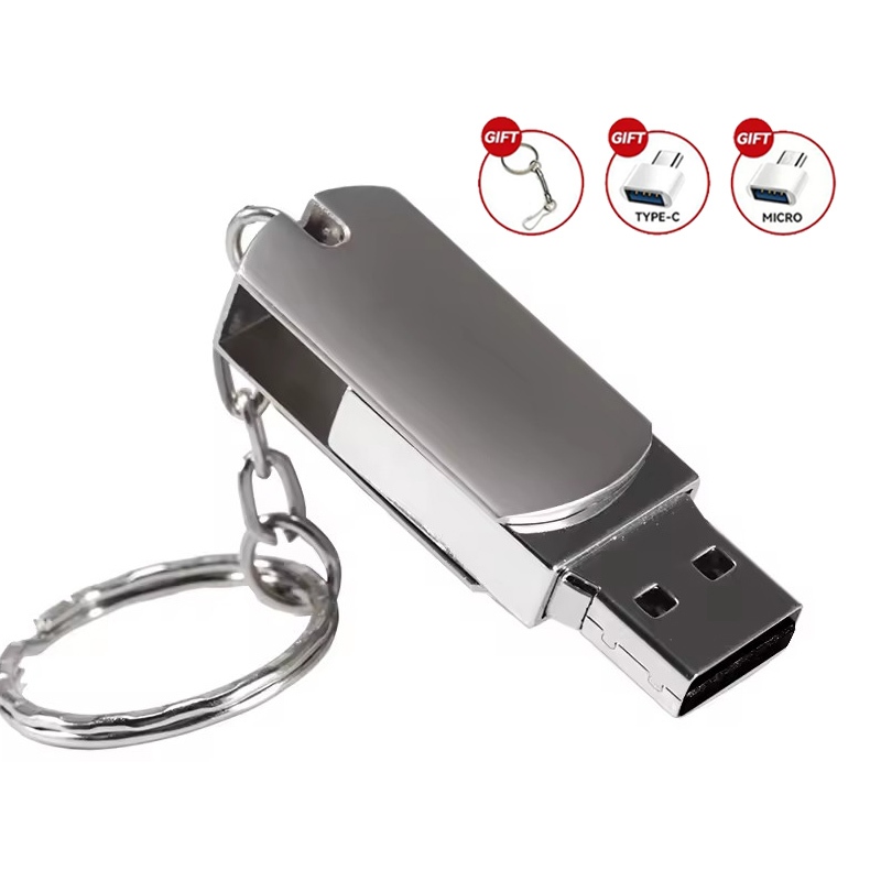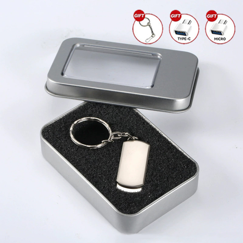 360°Metal Rotating Flash Memory Driver, Customized Personalized Logo, 32GB/128GB/256GB/512GB/1TB/2TB USB 3.0 High-Speed Transmission, with TYPE-C Adapter, Gift Preferred Tin Box