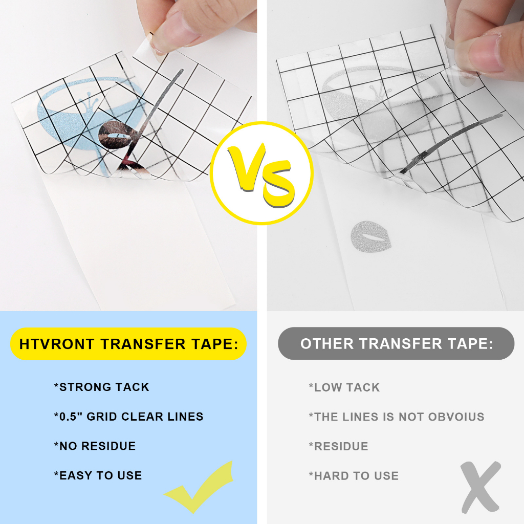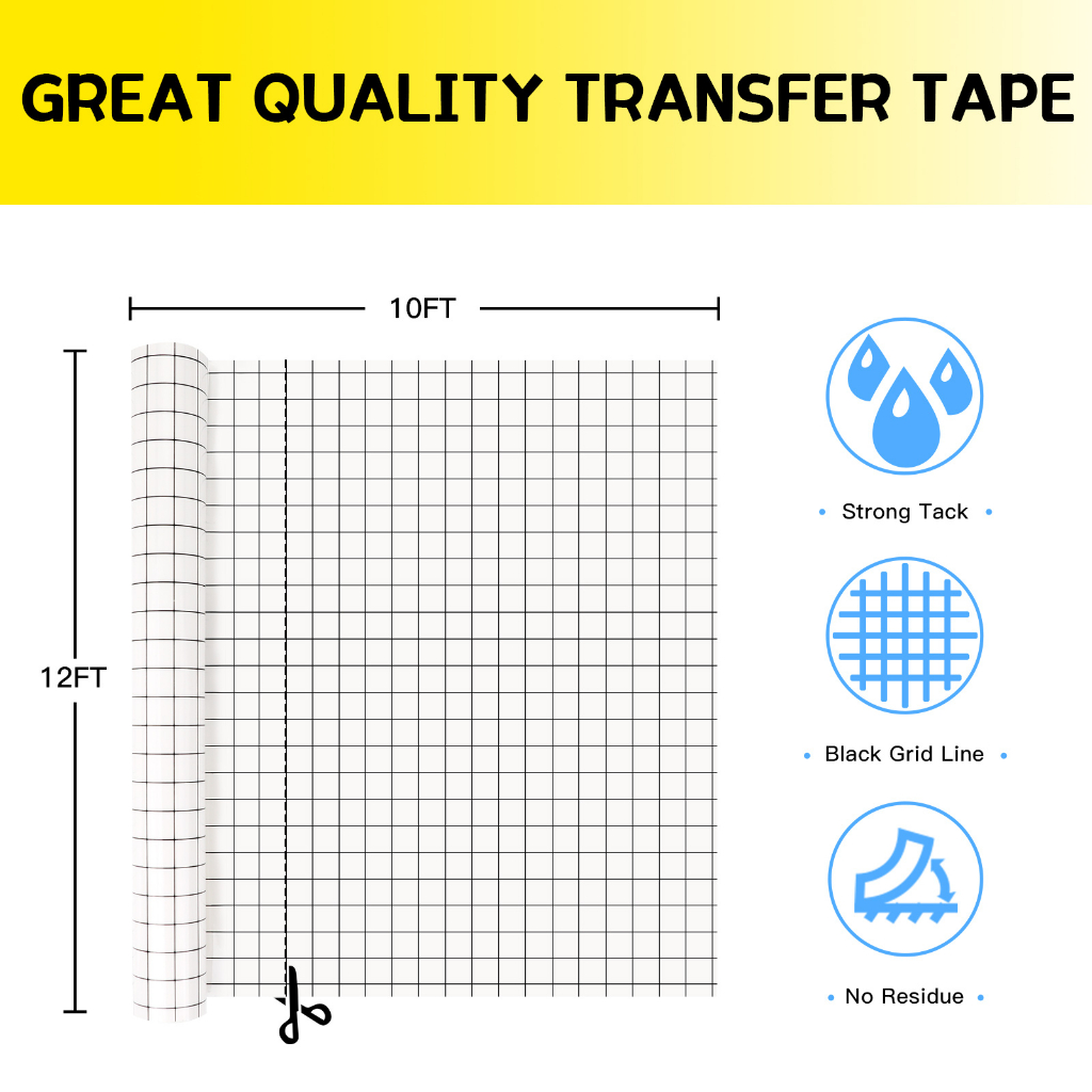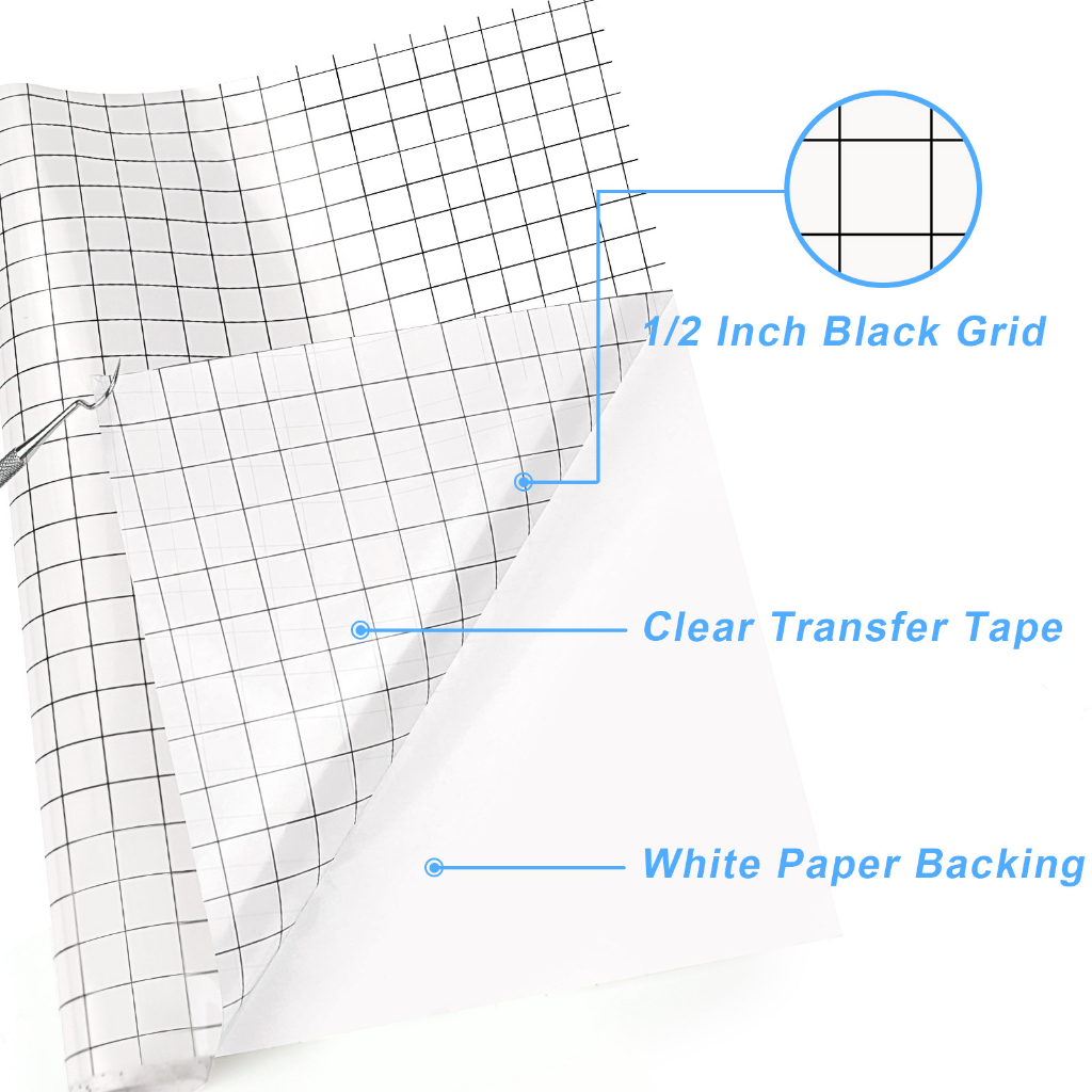 HTVRONT Transfer Tape 12"x120" For Self Adhesive Permanent Vinyl Roll Alignment Black Grid Rolls Windows Stickers