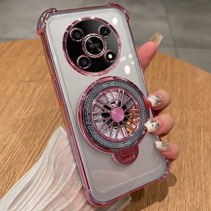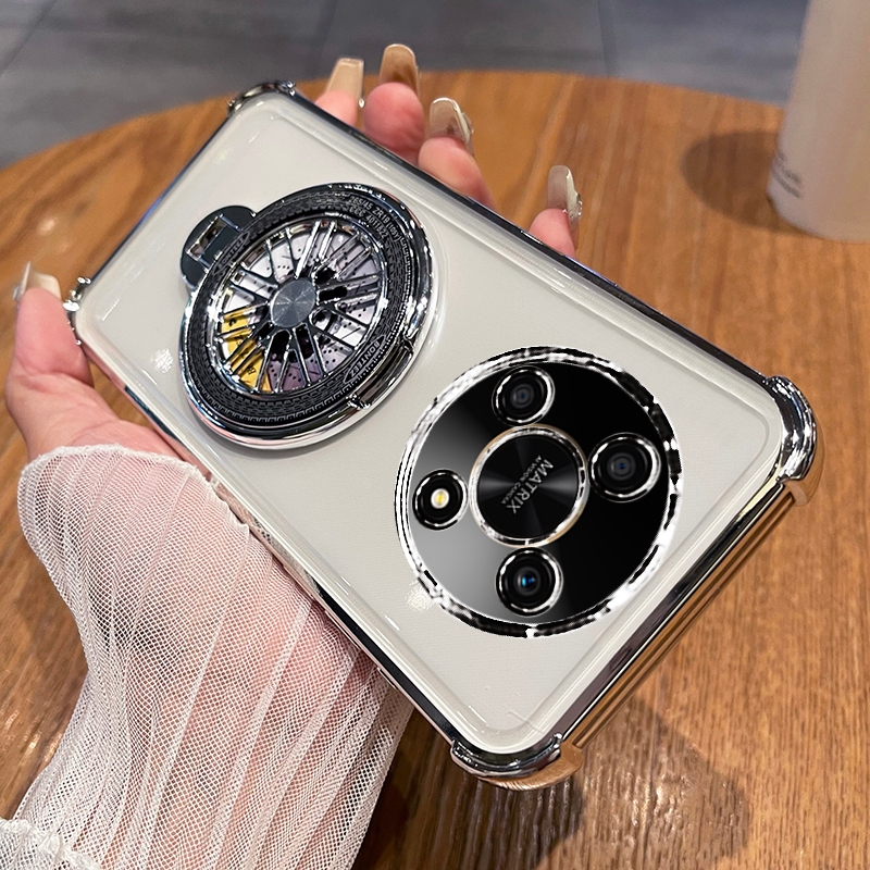 Huawei Nova 13i 12i 11i Nova12i 12 i Plating Transparent Soft Silicone Case Shockproof Bumper Edge Airbag Anti Drop Protection Back Cover with Folding Gyro Bracket