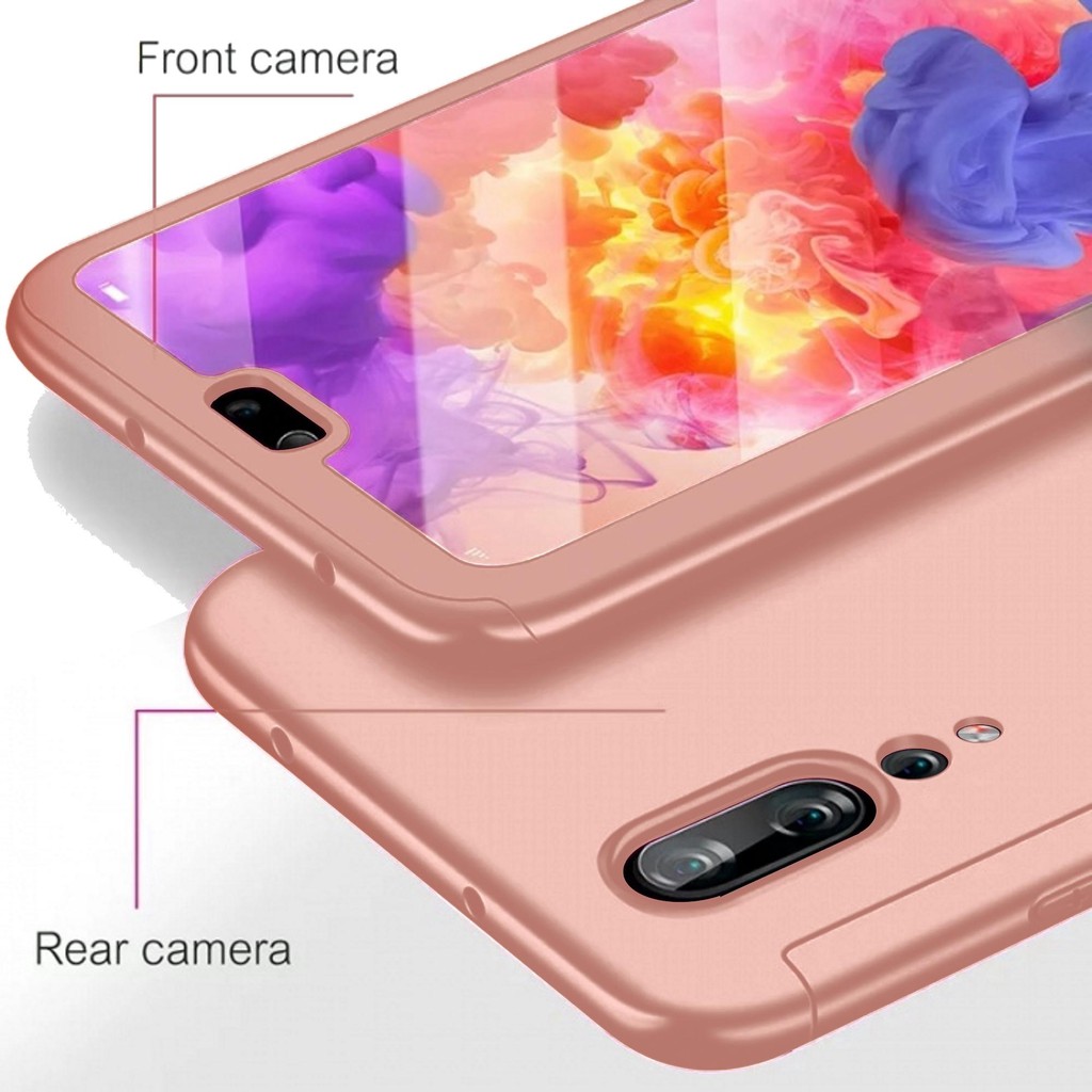 Huawei P20 Pro 360 Degree Full Body Armor Case with FREE TEMPERED GLASS (Rose Pink)