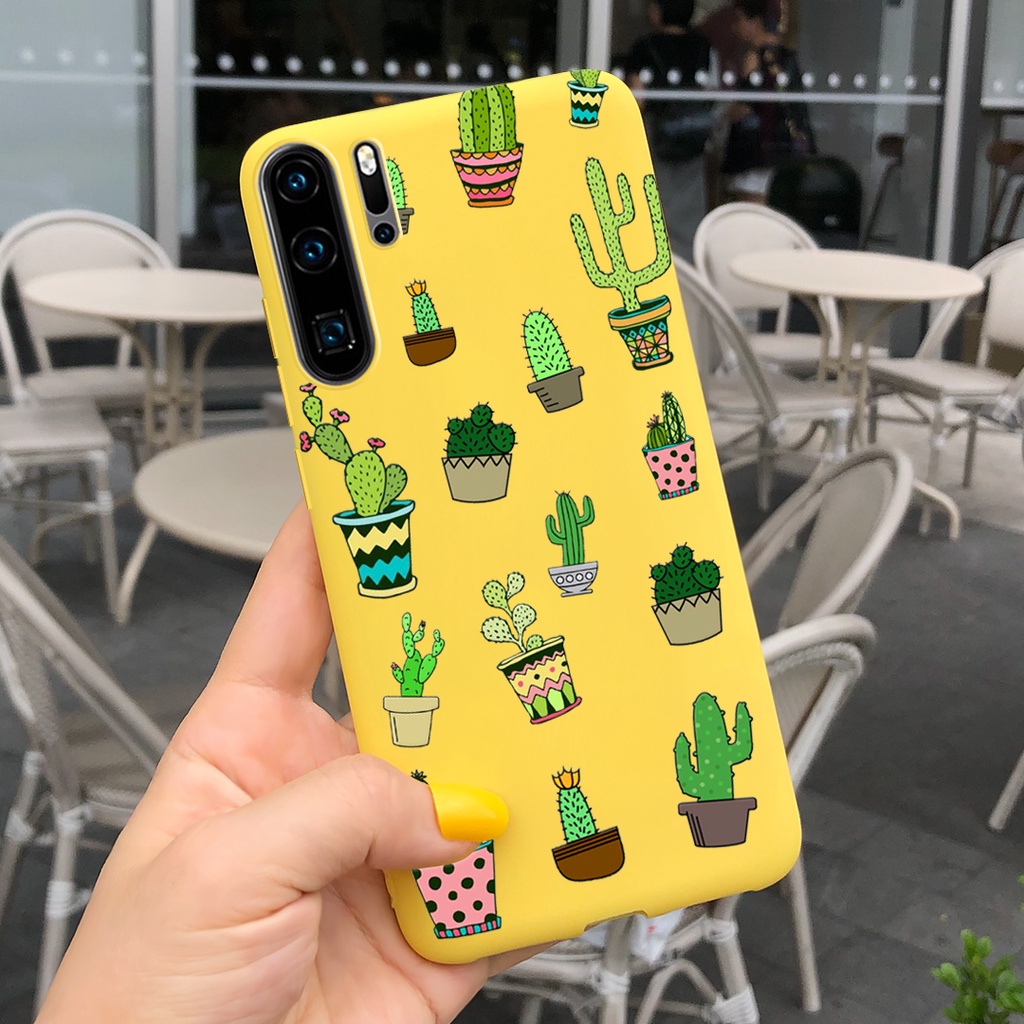 Huawei P30 Pro / P30 Lite / P30 Cute Cactus Astronaut Cartooon Phone Case VOG-L29 MAR-LX2 ELE-L29 Candy Color Silicone Soft Casing