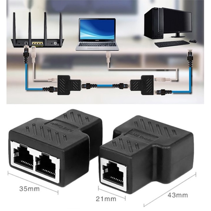 Hub Spliter RJ45 LAN Ethernet Network Connector Splitter Ethernet Cable Extender 100mbps/1 To 2ways RJ45 Ethernet LAN Network Splitter Double Adapter Ports Coupler Connector Extender Adapter Plug Connector Adapter