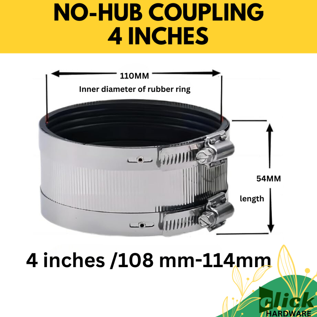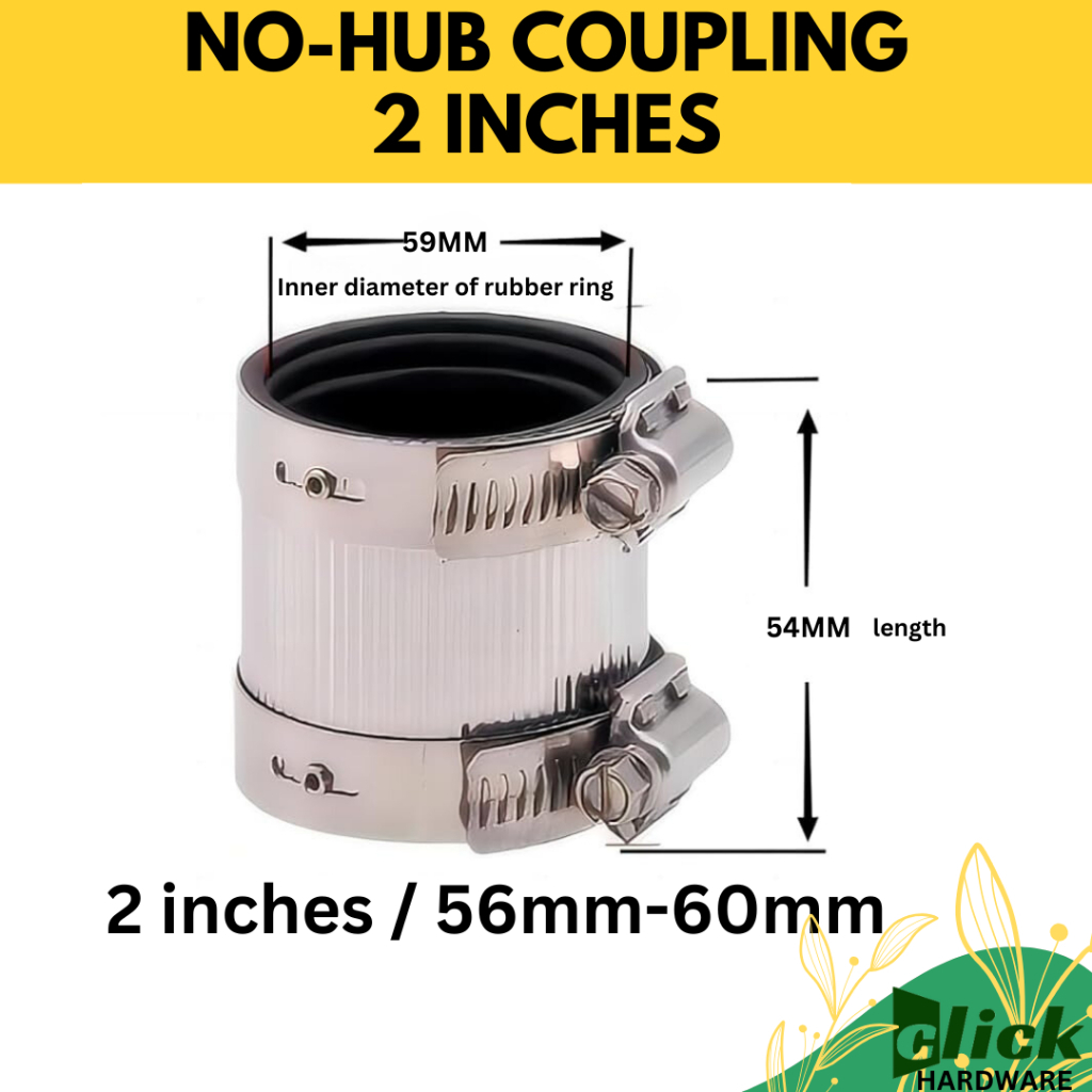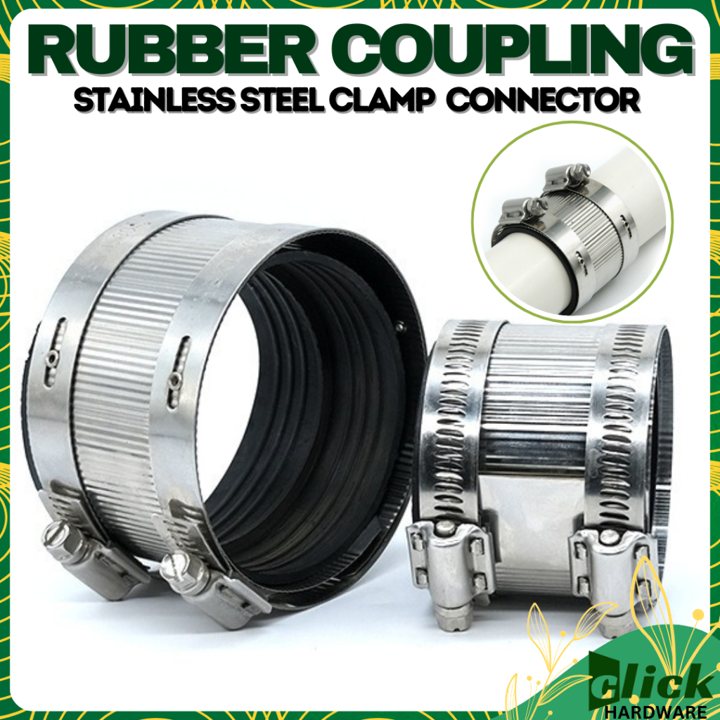 Hub less Coupling Rubber Coupling Connector with Stainless Steel Clamp - 2 3 4 8 INCH CLICK HARDWARE