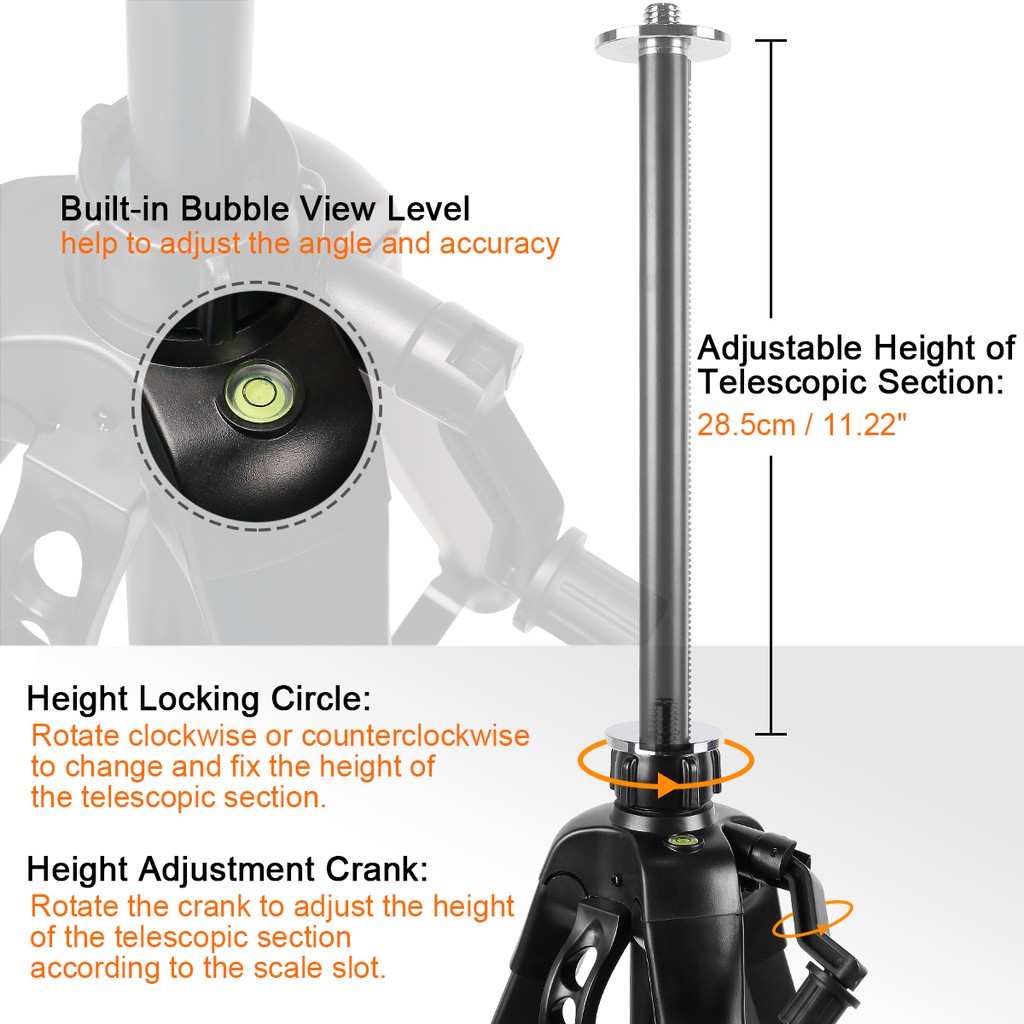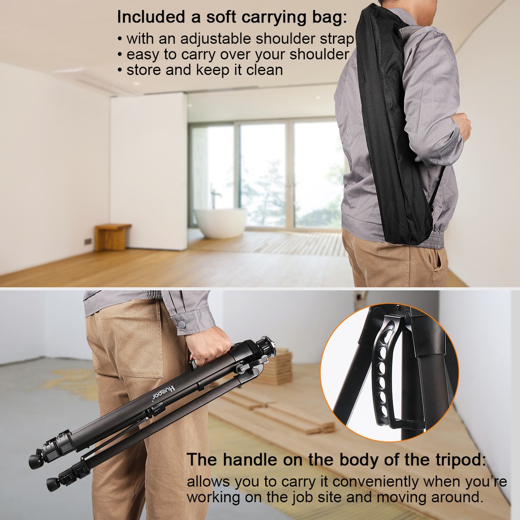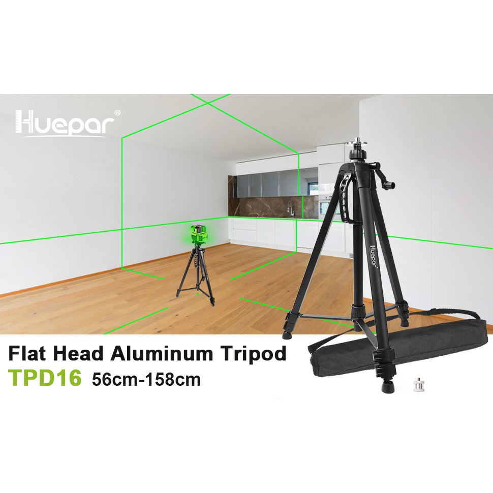 Huepar 1.6M Laser Level Tripod Aluminum Flat Head Adjustable Height Tripod Stand with Handle Bubble for Self leveling Level