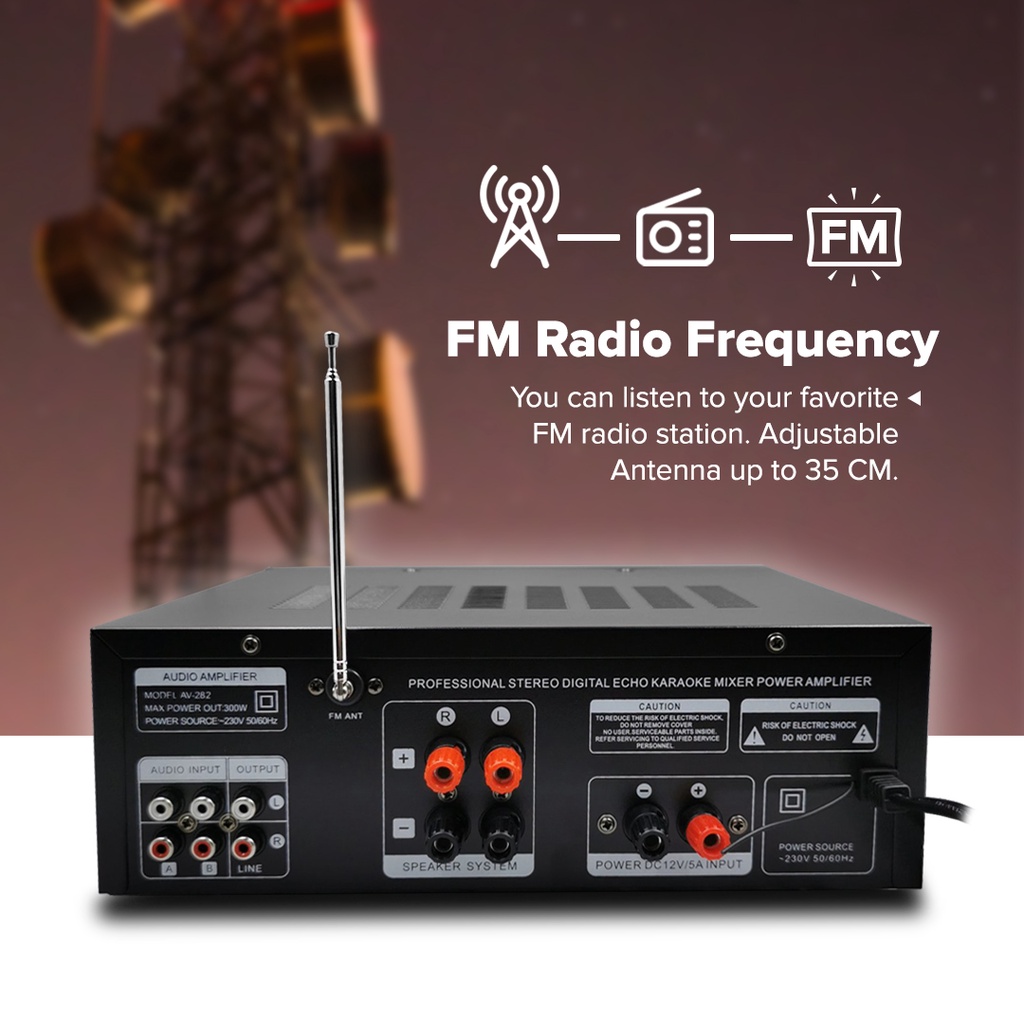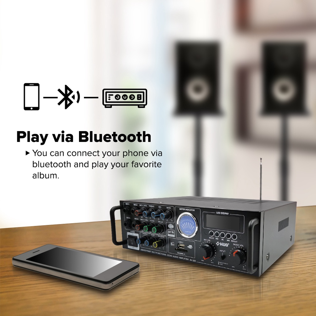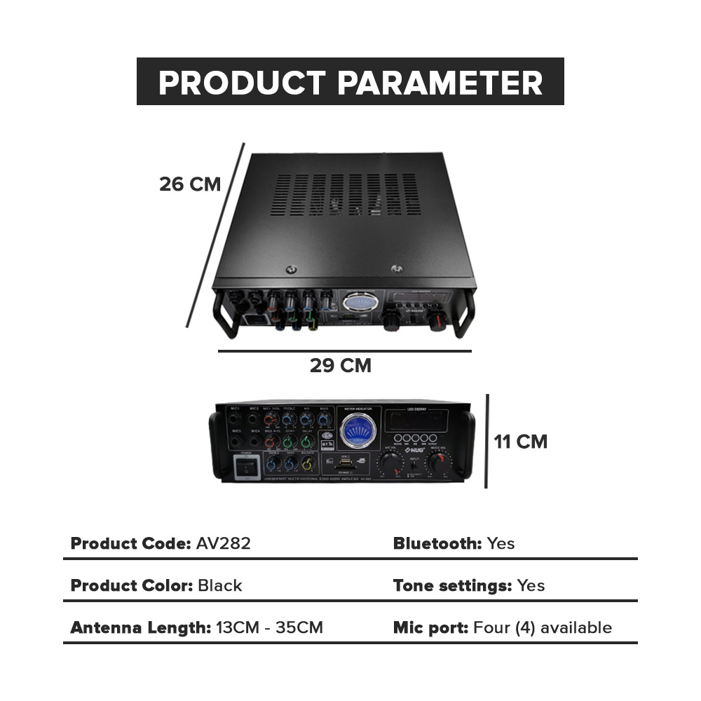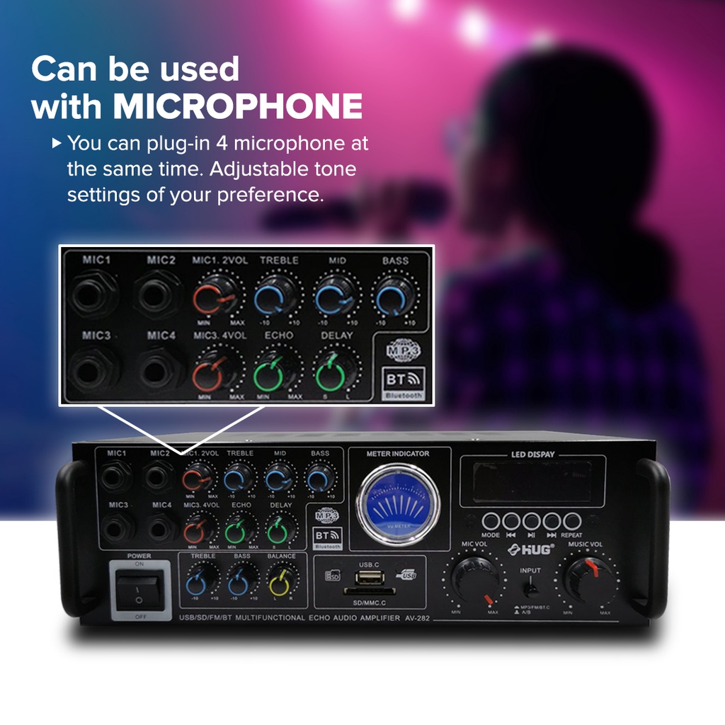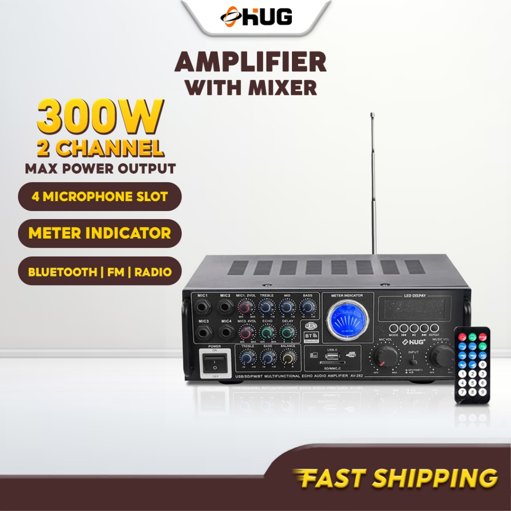 Hug 300 Watts 2 Channel Audio Amplifier With Mixer Equalizer Usb Bluetooth, Radio Av282