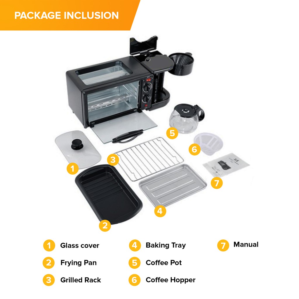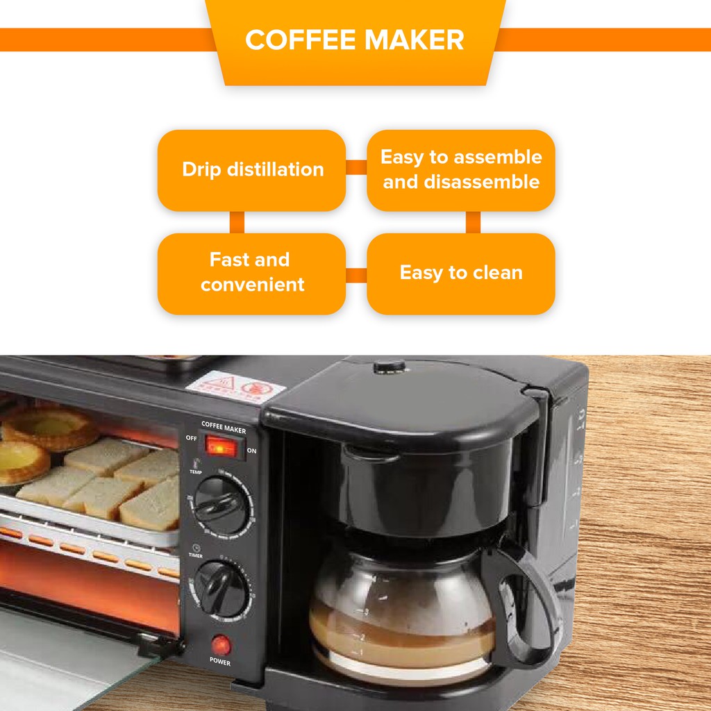 Hug Best 3 In 1 Home Breakfast Machine Coffee Maker Electric Oven Toaster Grill Pan - Kx-9L-K