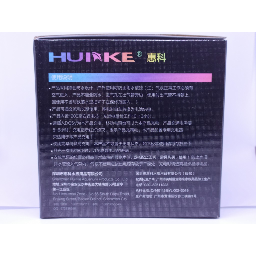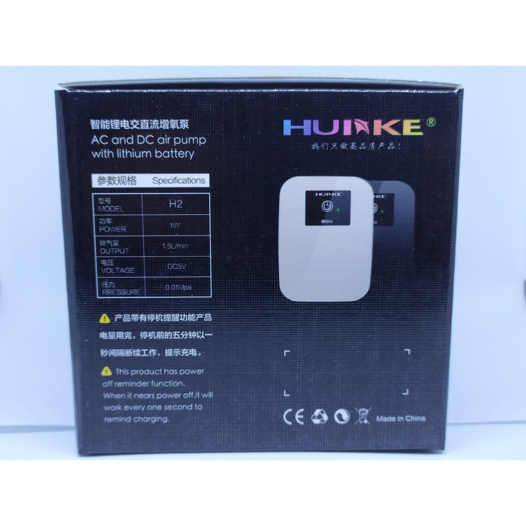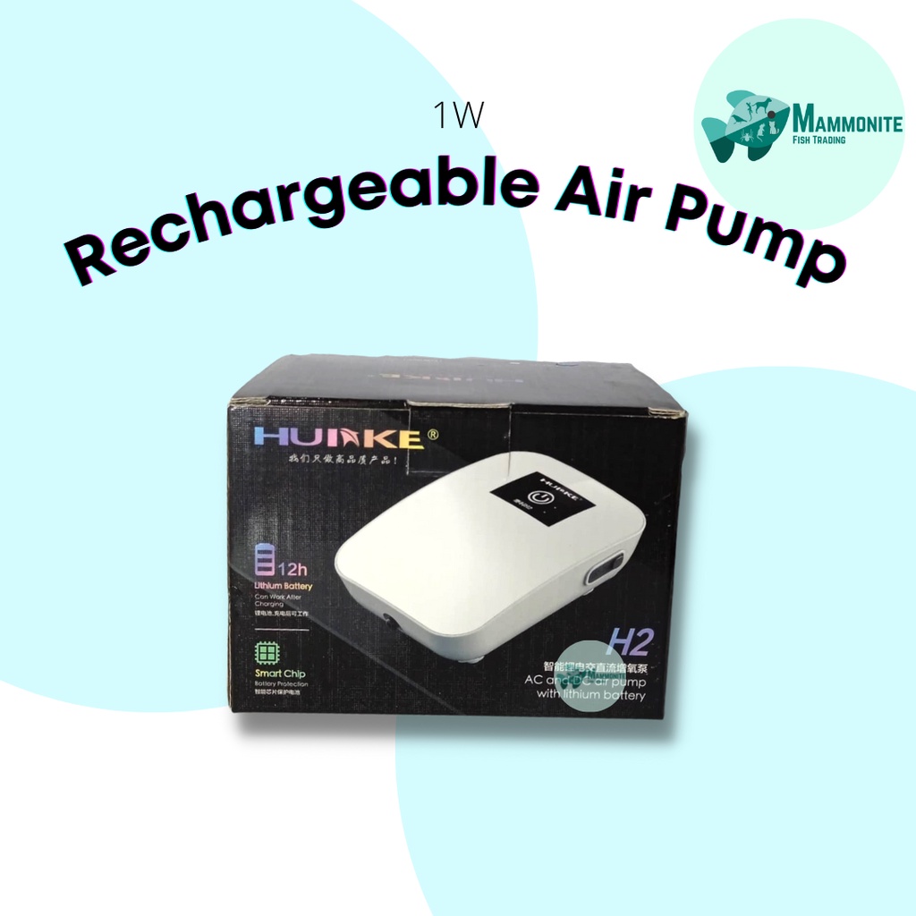 Huike AC DC Rechargeable Air Pump H2 12 Hours With Lithium Battery 1 Watt 1.5L/M For Aquarium