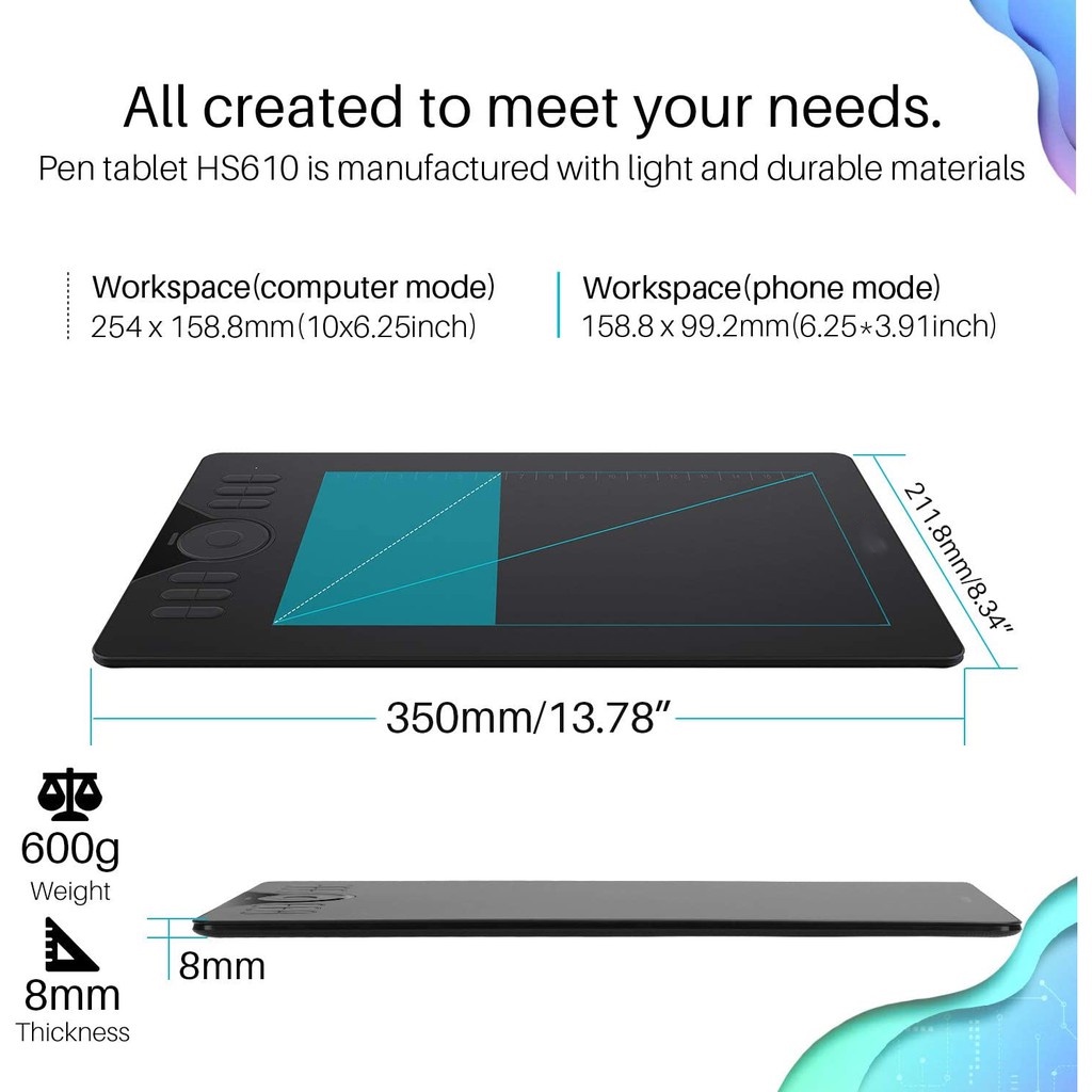 Graphics Drawing Tablet H610 Android 6.0 Windows Supported 10X6.25 Inches