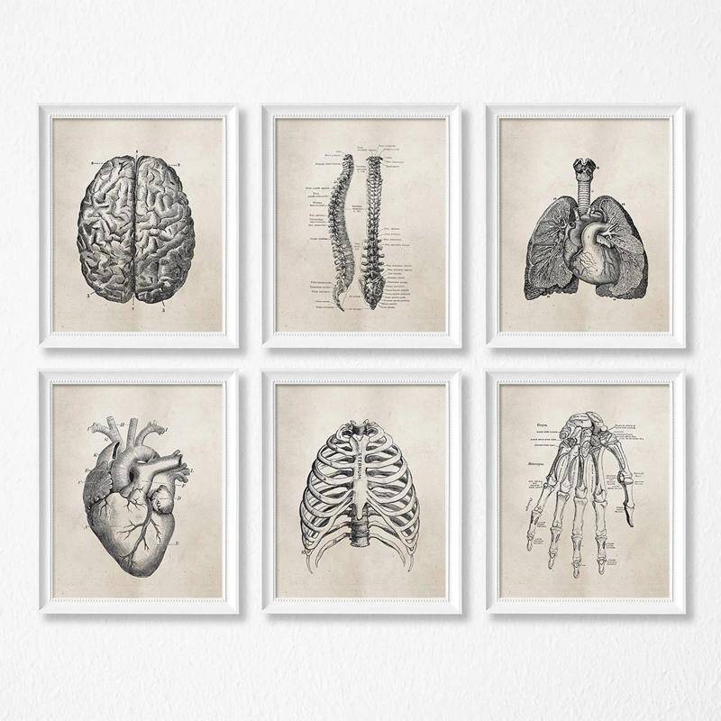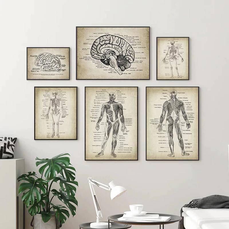 Human Anatomy Science Vintage Posters wall Art canvas Prints Medical Anatomy Painting Medical Doctor Clinic Wall Pictures Decoration