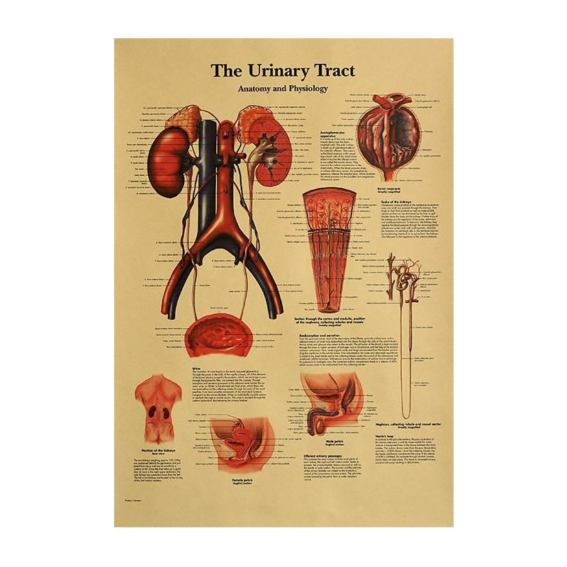 Human Body Structure Skeleton System 'Urinary Tract' Retro Poster Medical Painting Art Kraft Paper Wall Sticker