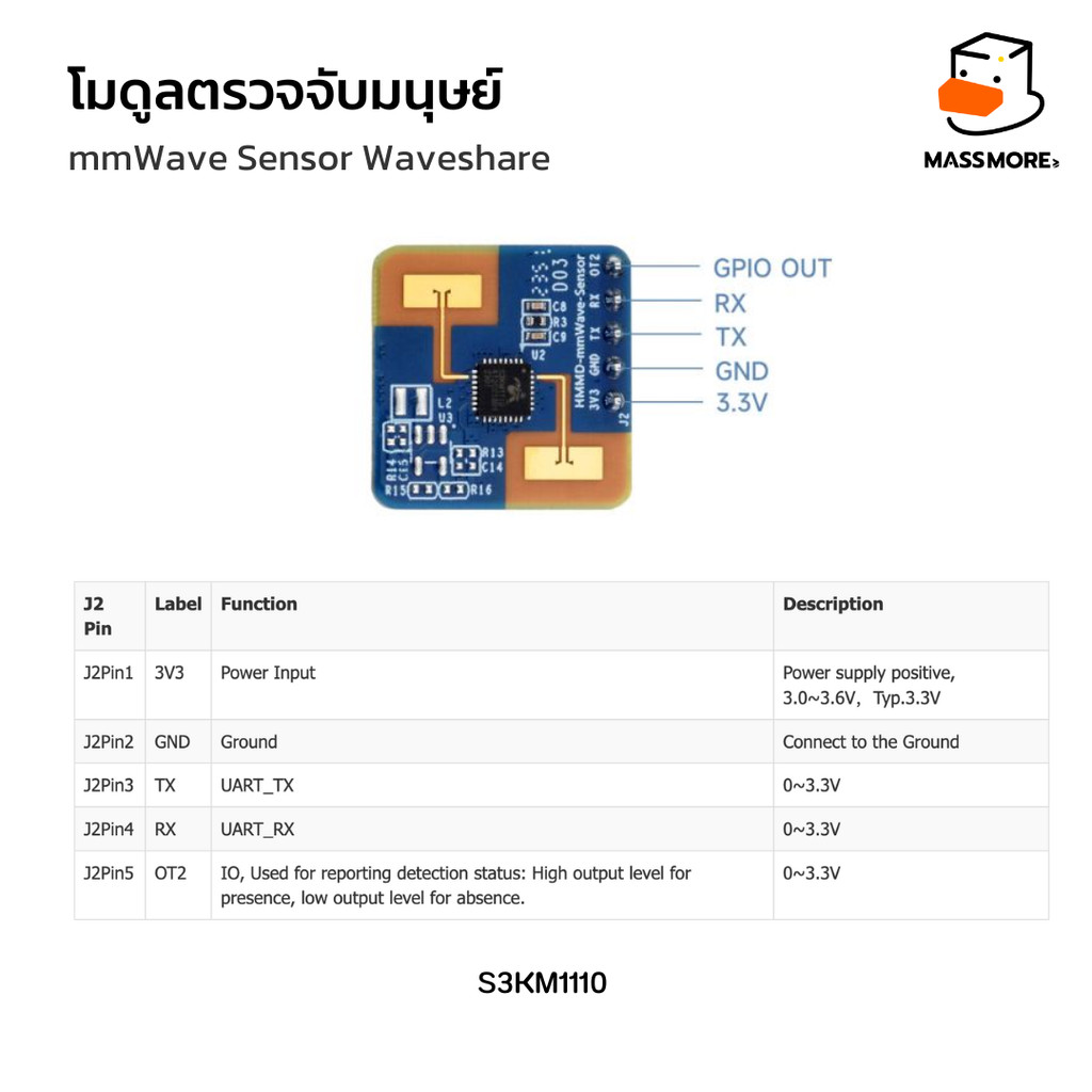 Human Motion Detection Module mmWave Sensor 24GHz S3KM1110 Radar Waveshare