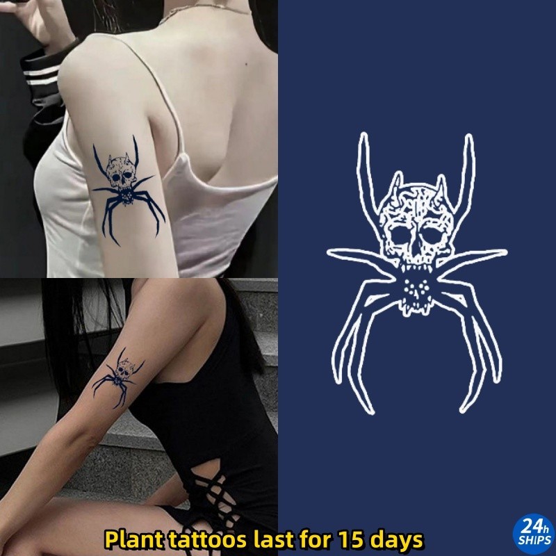 Human face spider pattern tattoo cute girl arm plant tattoo waterproof tattoo sticker lasts for 15 days temporary fake tattoo