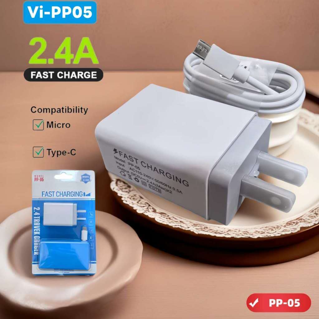 pp05 Vivo Fast Charger 2.4A Charger With Android Micro Type c Phone Charger Usb Cable Cord