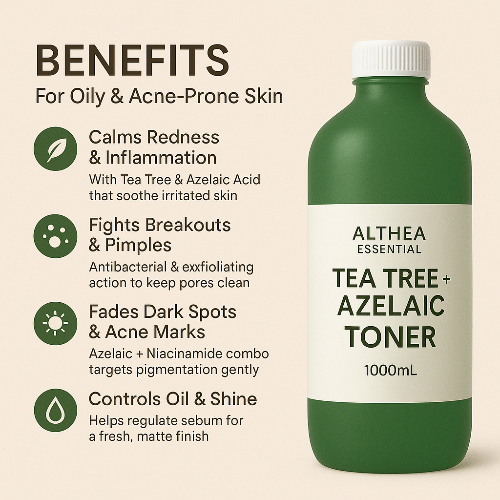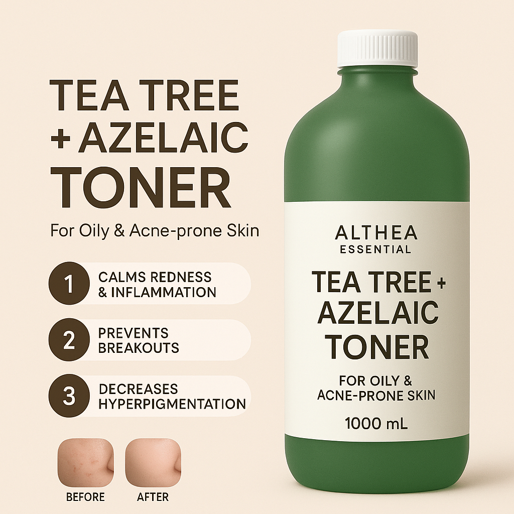 Anti-Acne Toner 1L Refill | Tea Tree + Azelaic | Whitening + Anti-Oil | Best for Spa & Body Treatmen