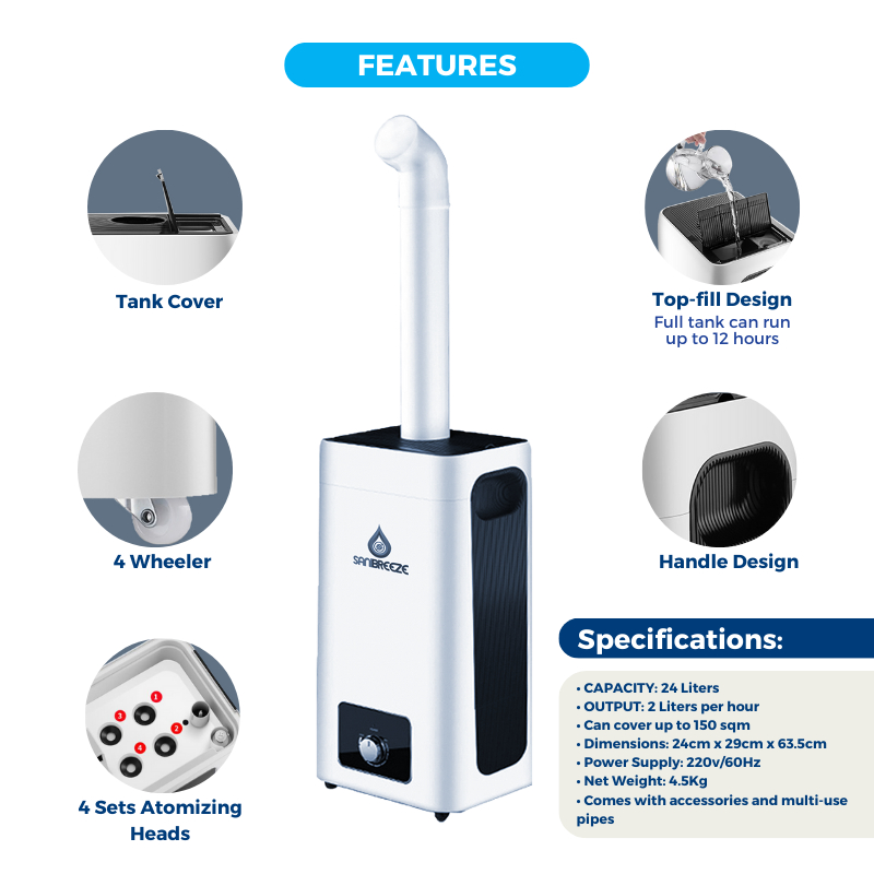 Humidifier/Fogging and Disinfectant Machine 24L capacity w/ FREE 4L Anolyte Solution