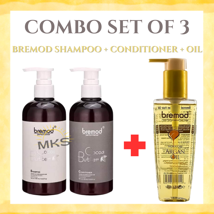 [COMBO SET OF 3] Bremod Hair Shampoo Conditioner Serum Vitamin E Argan Oil Serum Good for DrY Frizzy