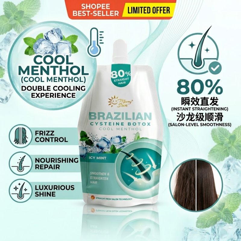 Merry Sun Hair Botox Sakura 700ml Fix 8 Hair Problems in 20 Mins! NO HEAT 80% STRAIGHT