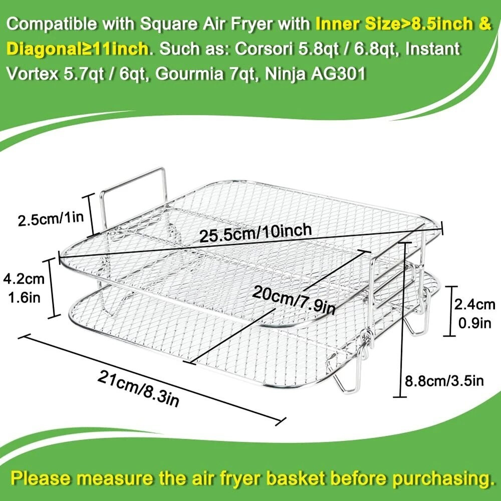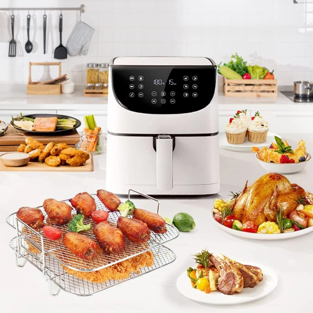 Air Fryer Rack Dehydrator stackable air fryer dehydrating tiers – 3-layer mesh design maximizes
