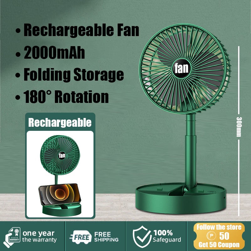 ✅ Electric fan strong wind silent USB charging 8 hours of battery life retractable folding portable