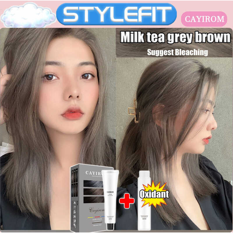 CAYIROM 100Ml Dye+100Ml Oxidant/Milk Tea Grey Brown Hair Color Permanent Fc6