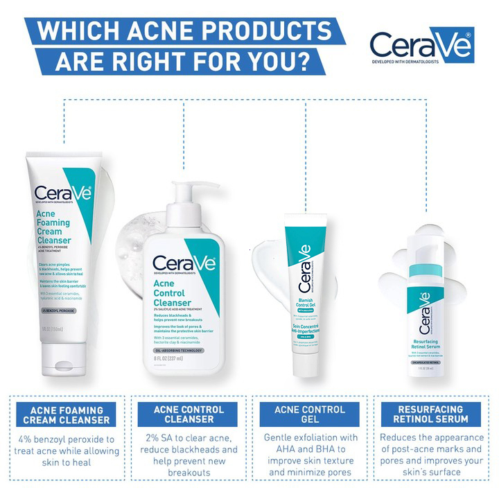 CeraVe Acne Control Cleanser 237ml |Resurfacing Retinol Serum 30ml |Acne Foaming Cream Cleanser150ml