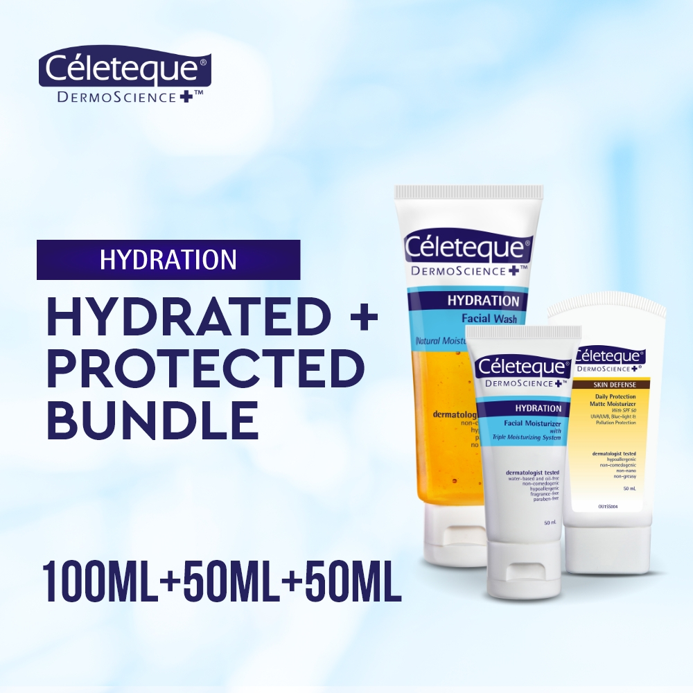 Hydrated + Protected Celeteque Bundle (Hydration Facial Wash + Hydration Facial Moisturizer + Skin D