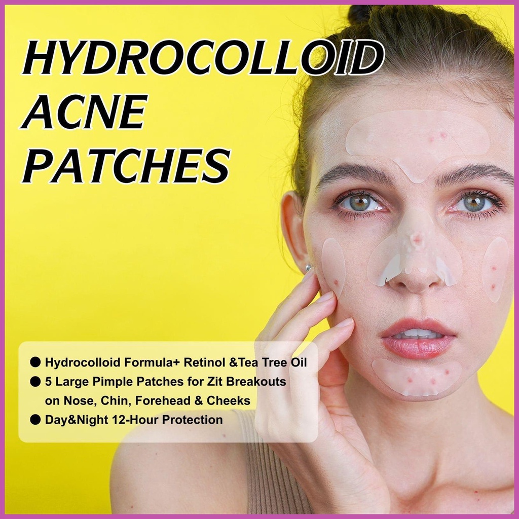 Hydrocolloid Patches Zit Stickers Pimple Patches Hydrocolloid Pimple Patch with Tea Tree Oil and Retinol for Full Face, 10 pcs