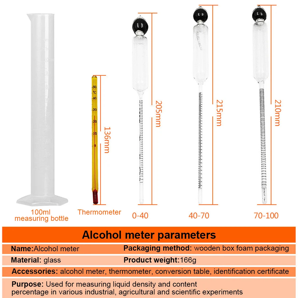 Hydrometer Alcoholmeter Tester Set 0-100 Alcohol Concentration Meter Winemaking Tool Wooden Box