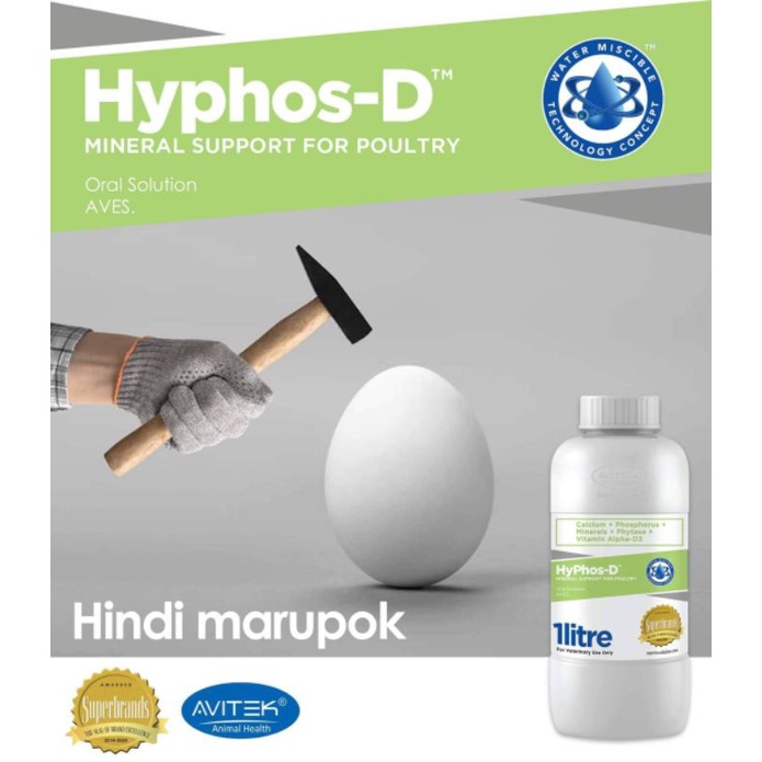 Hyphos-D for Calcium Support 1 Liter for Breeders, Layers and Broilers. Water Miscible Technology
