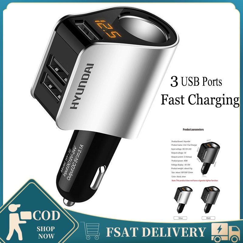 Hyundai Car Charger multi-function USB Adapter Car Electronics Voltmeter with LED