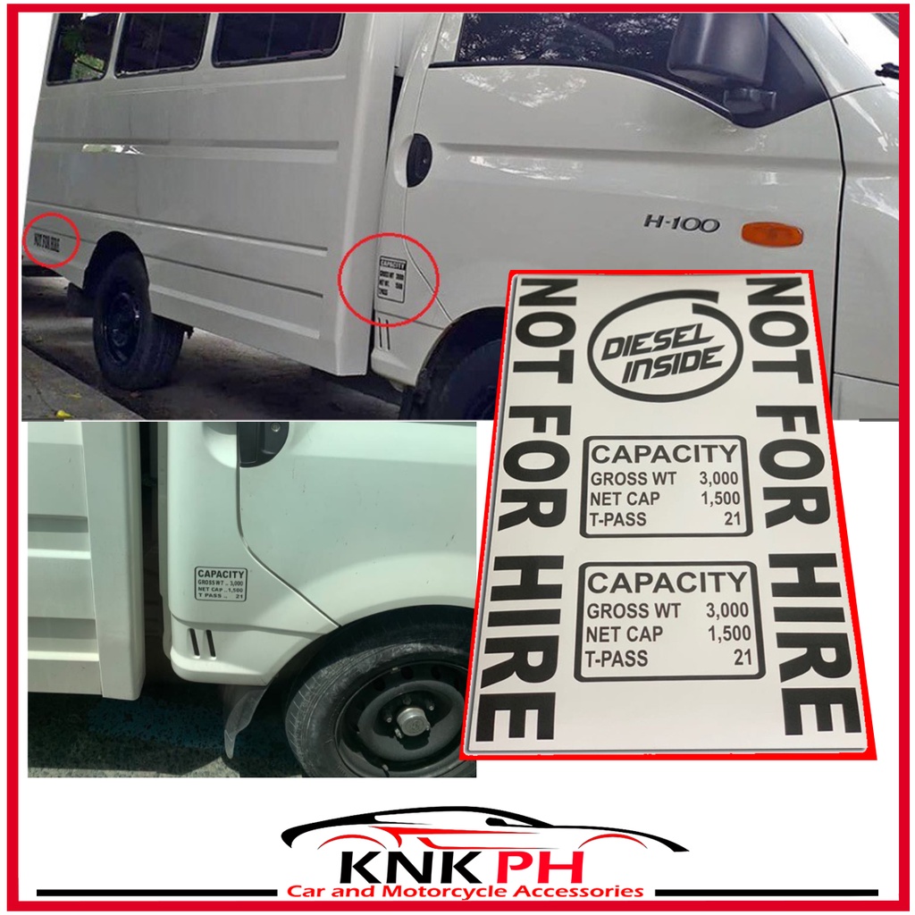 Hyundai H100 Van Car Sticker set Capacity Diesel and Not For Hire