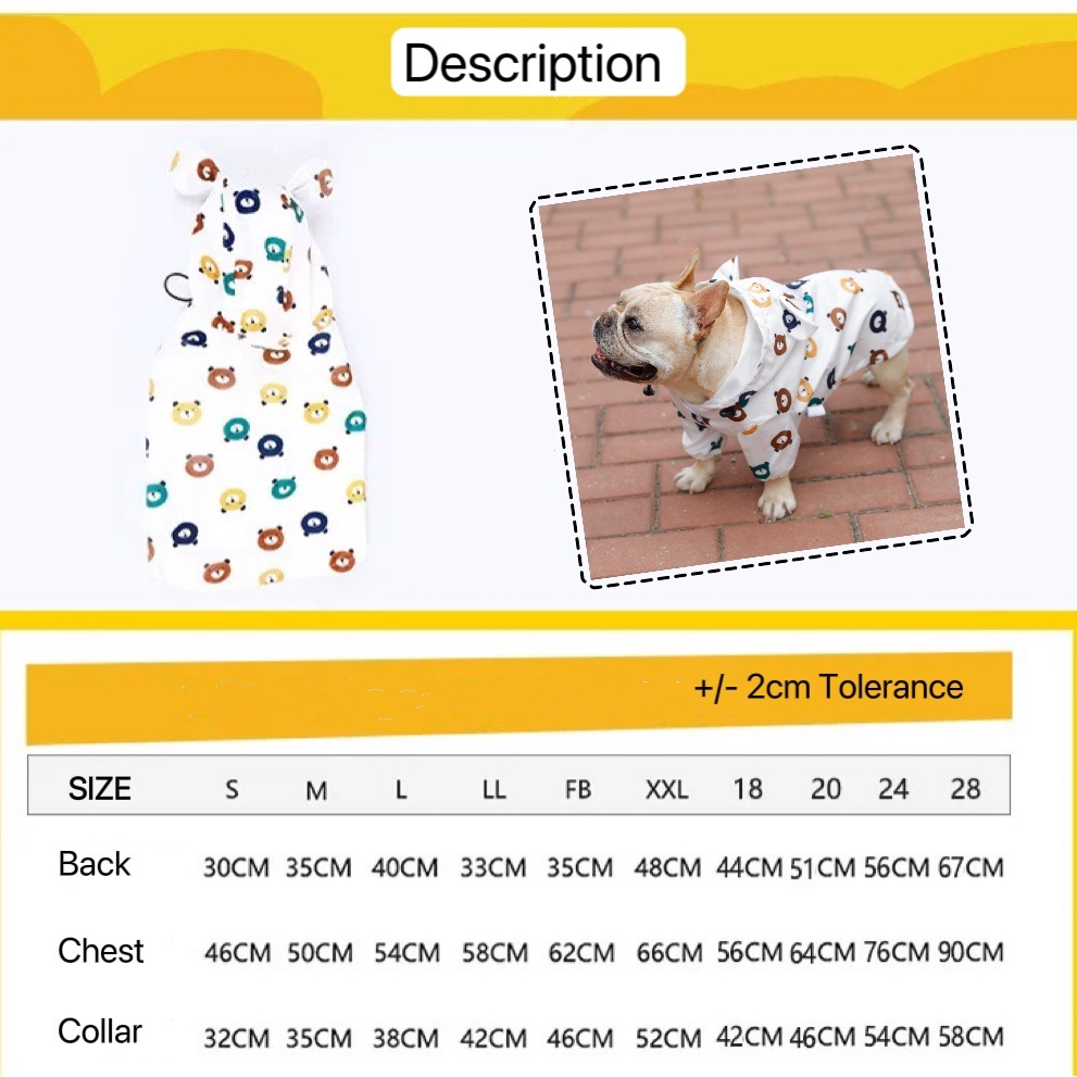 I'M CUTE Waterproof Dog Hooded PU Raincoat Bulldog Pug Raincoat Large Breed