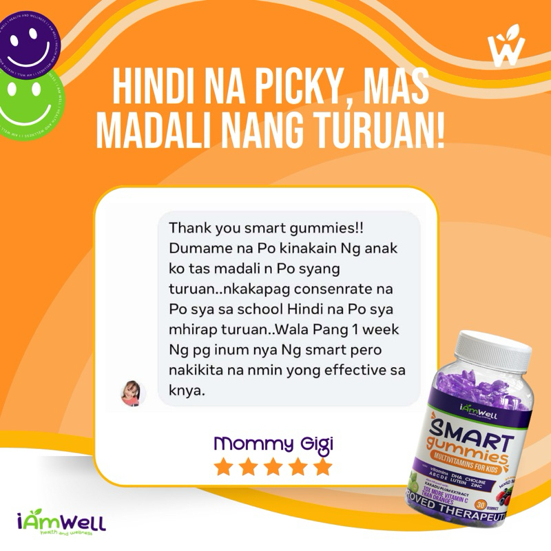 I AM WELL - SMART GUMMIES [3BOTTLES] PAMPAGANA KUMAIN PAMPATALINO PAMPALAKAS NG RESISTENSYA