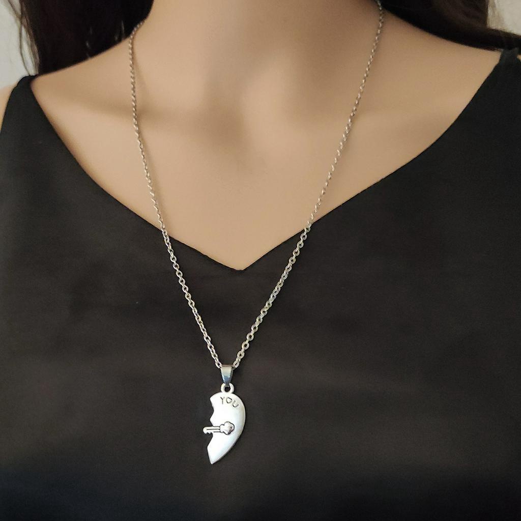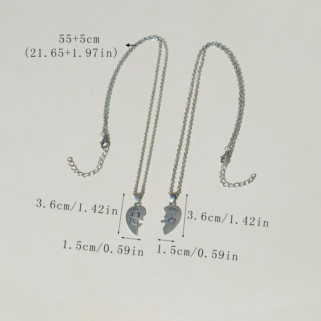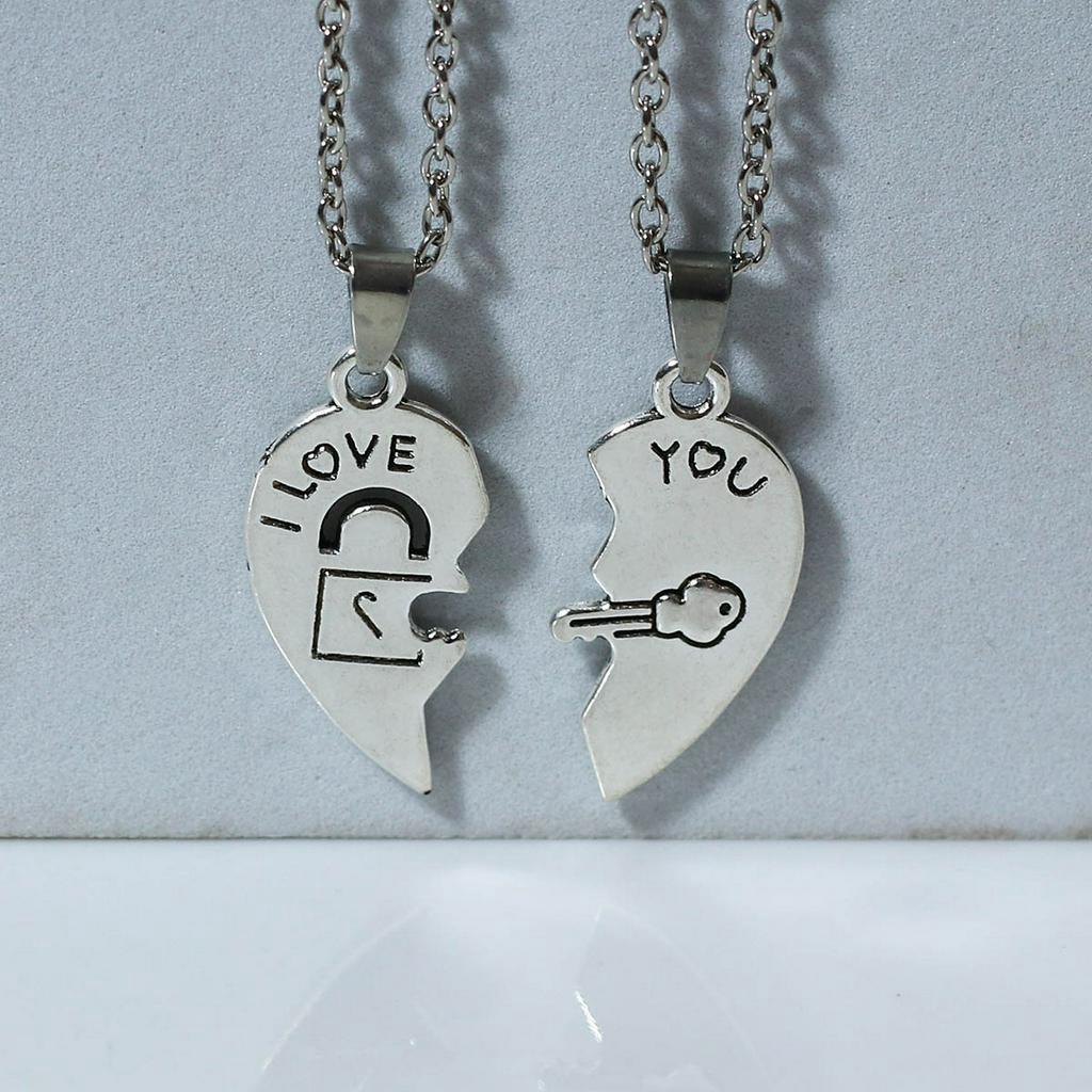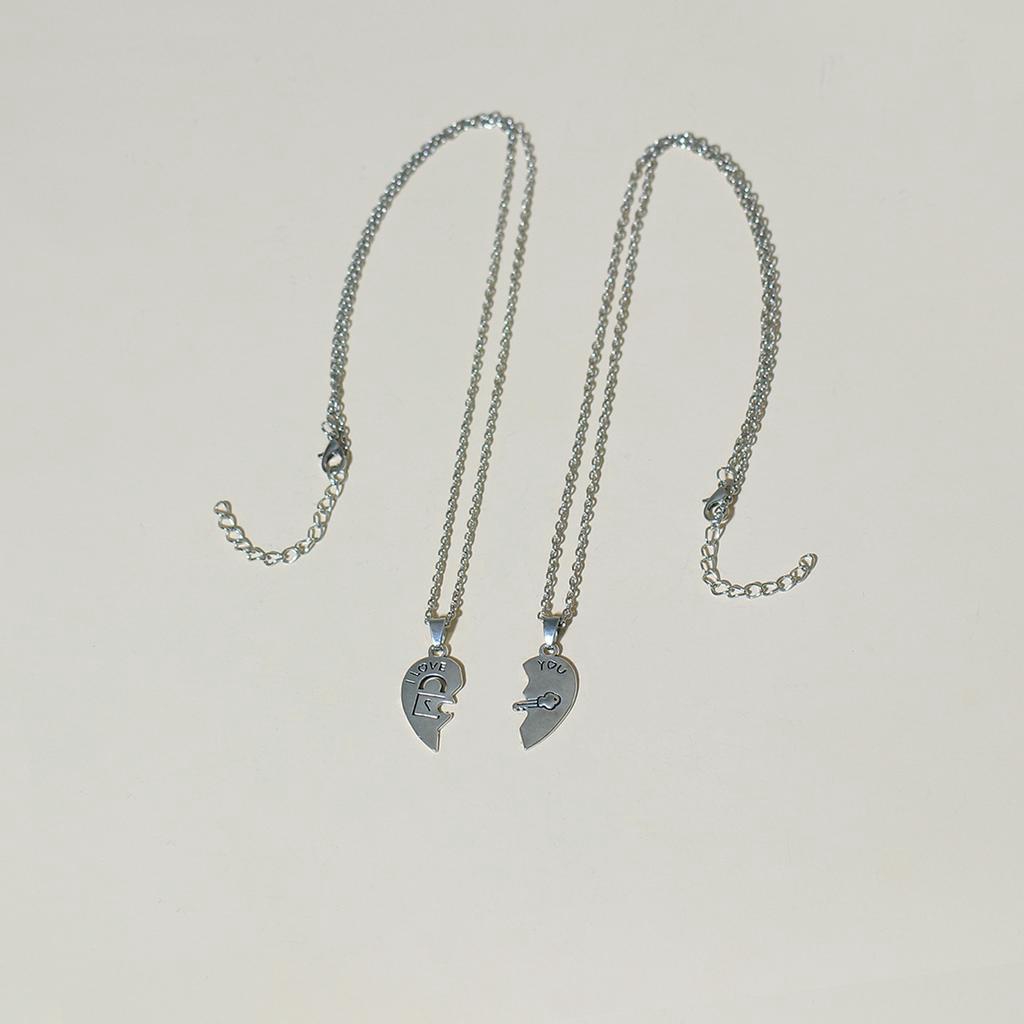 I LOVE YOU Lock and Key Stitching Couple Necklace 2 Confession Heart-Shaped Pendants