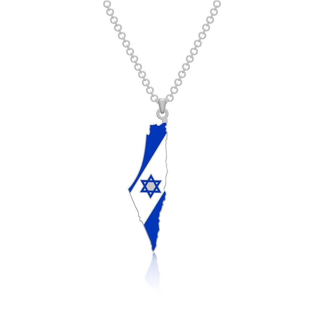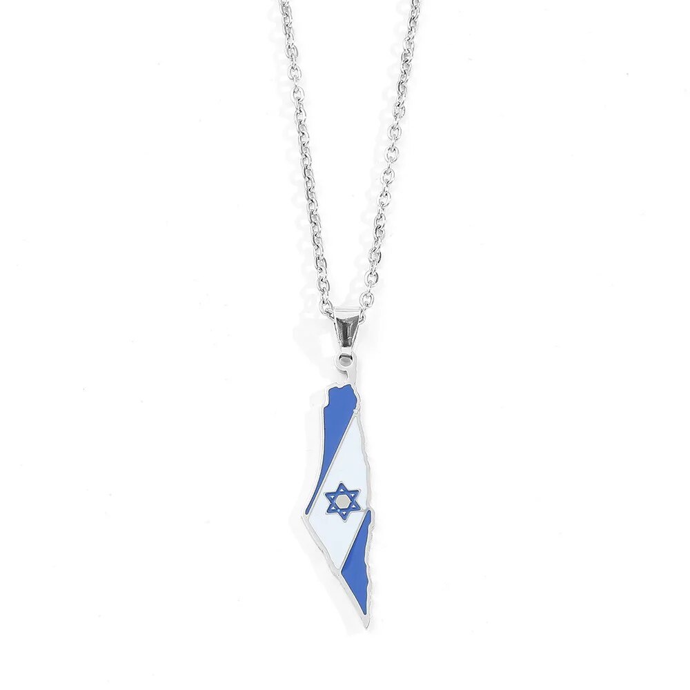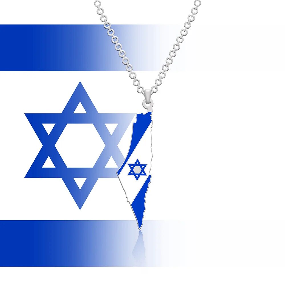 I Love Israel Map Flag Hexagram Star Ethnic Style Stainless Steel City Pendant Necklace Men Women Bl